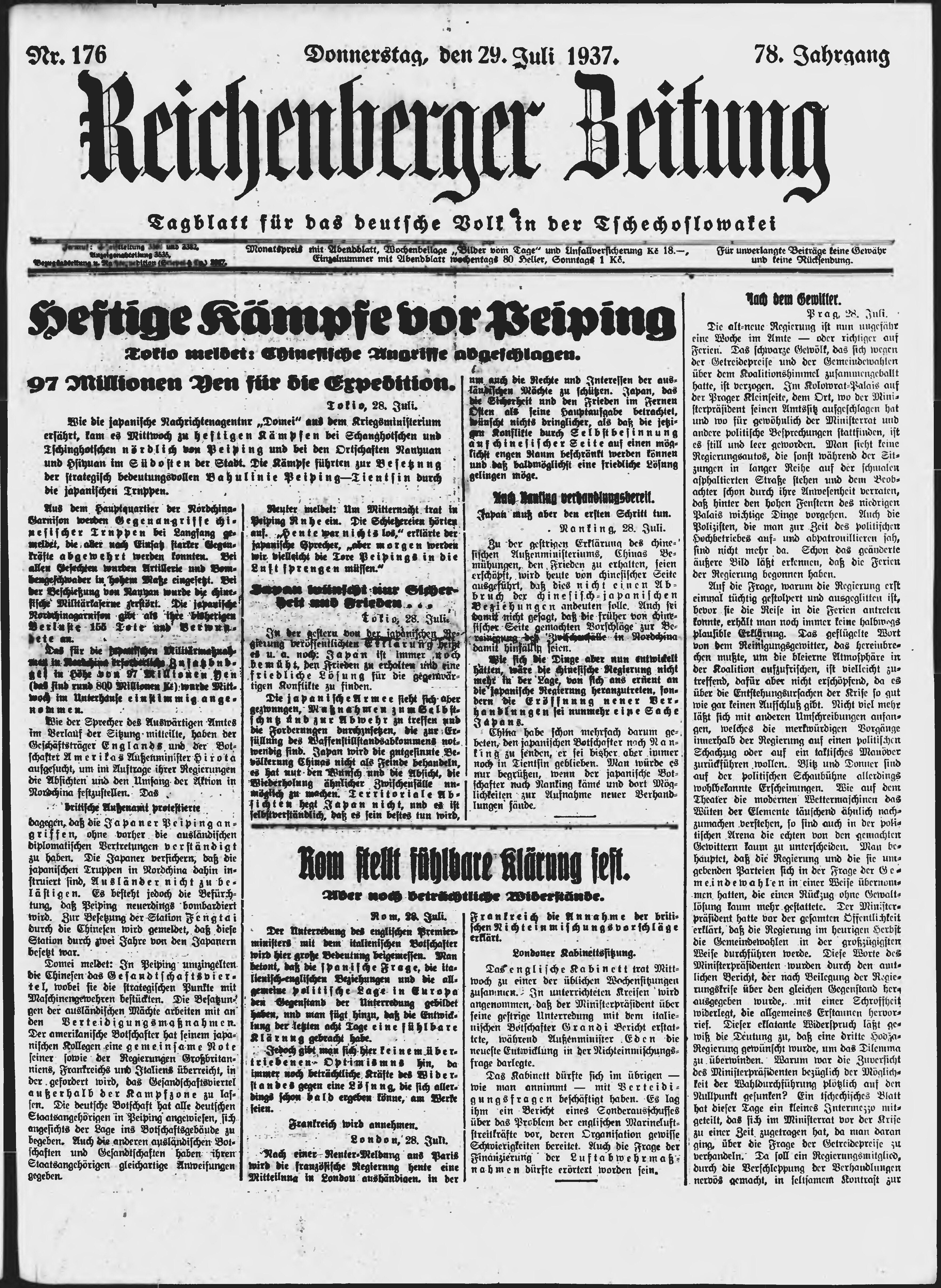 * Datum vydání výtisku: 29.7.1937 Číslo výtisku: 176 Poznámky k výtisku: ranní vydání;