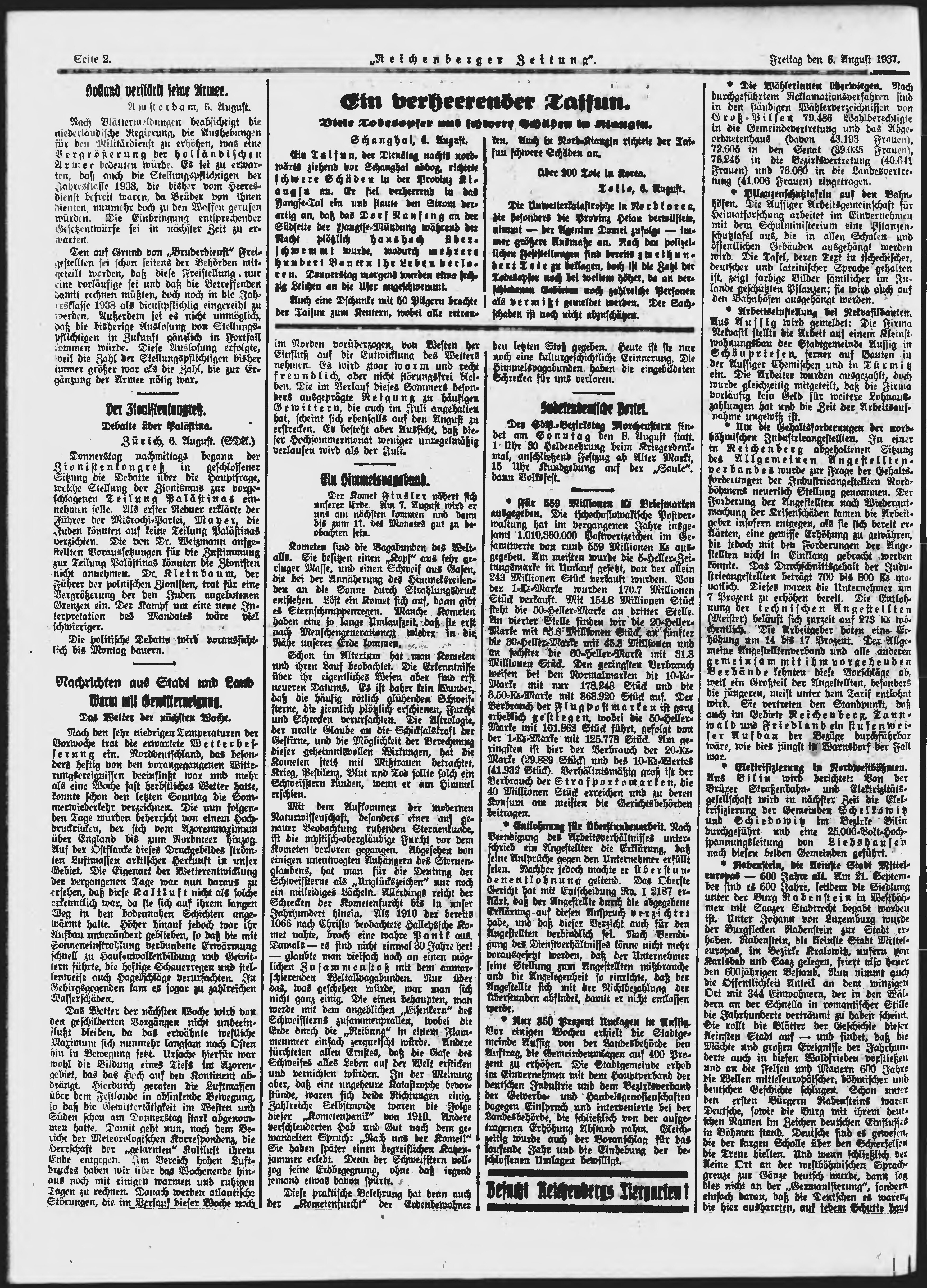 * Datum vydání výtisku: 6.8.1937 Číslo výtisku: 184 Typ výtisku: příloha Poznámky k výtisku: večerní vydání;