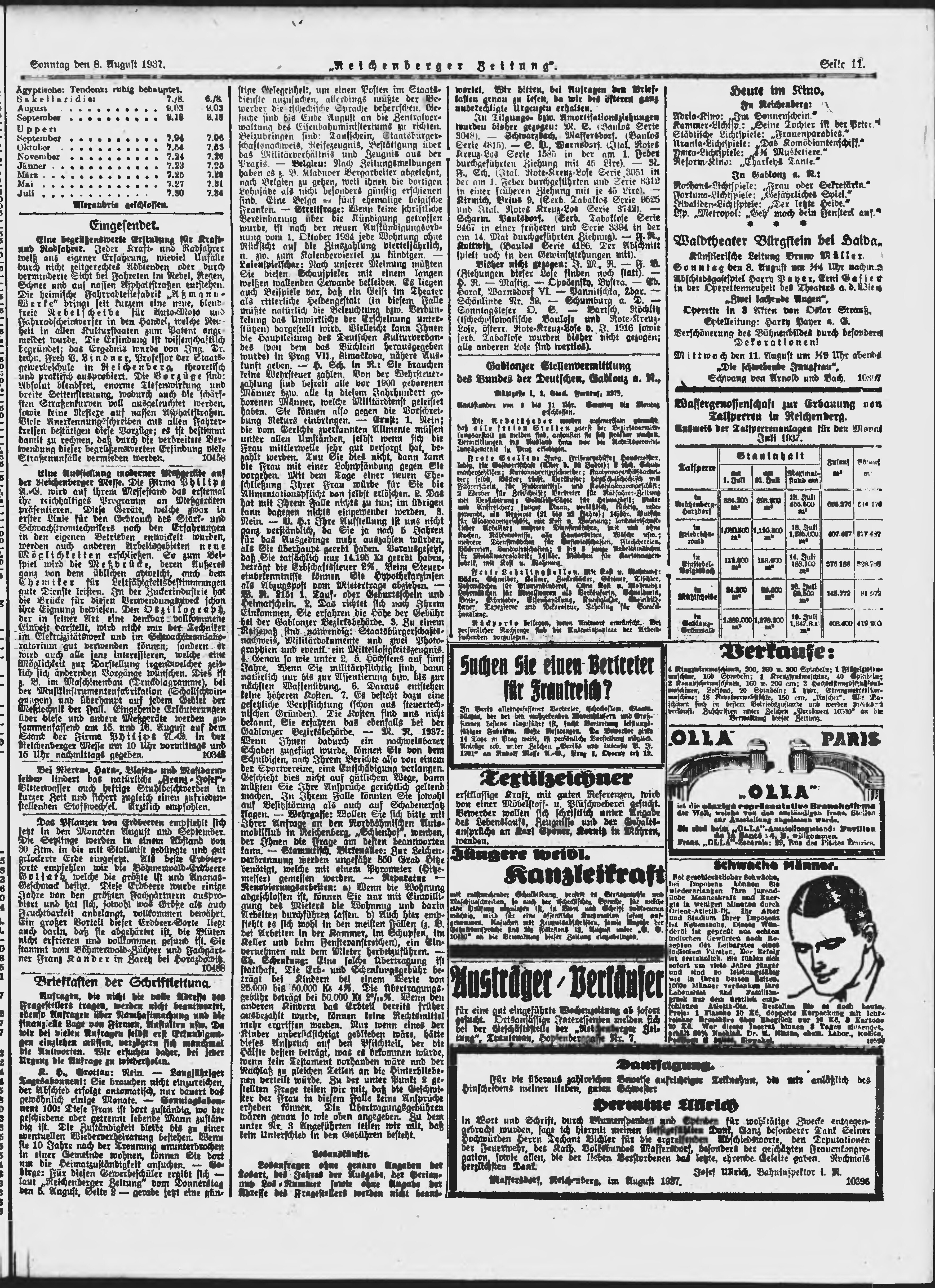* Datum vydání výtisku: 8.8.1937 Číslo výtisku: 185 Poznámky k výtisku: ranní vydání;