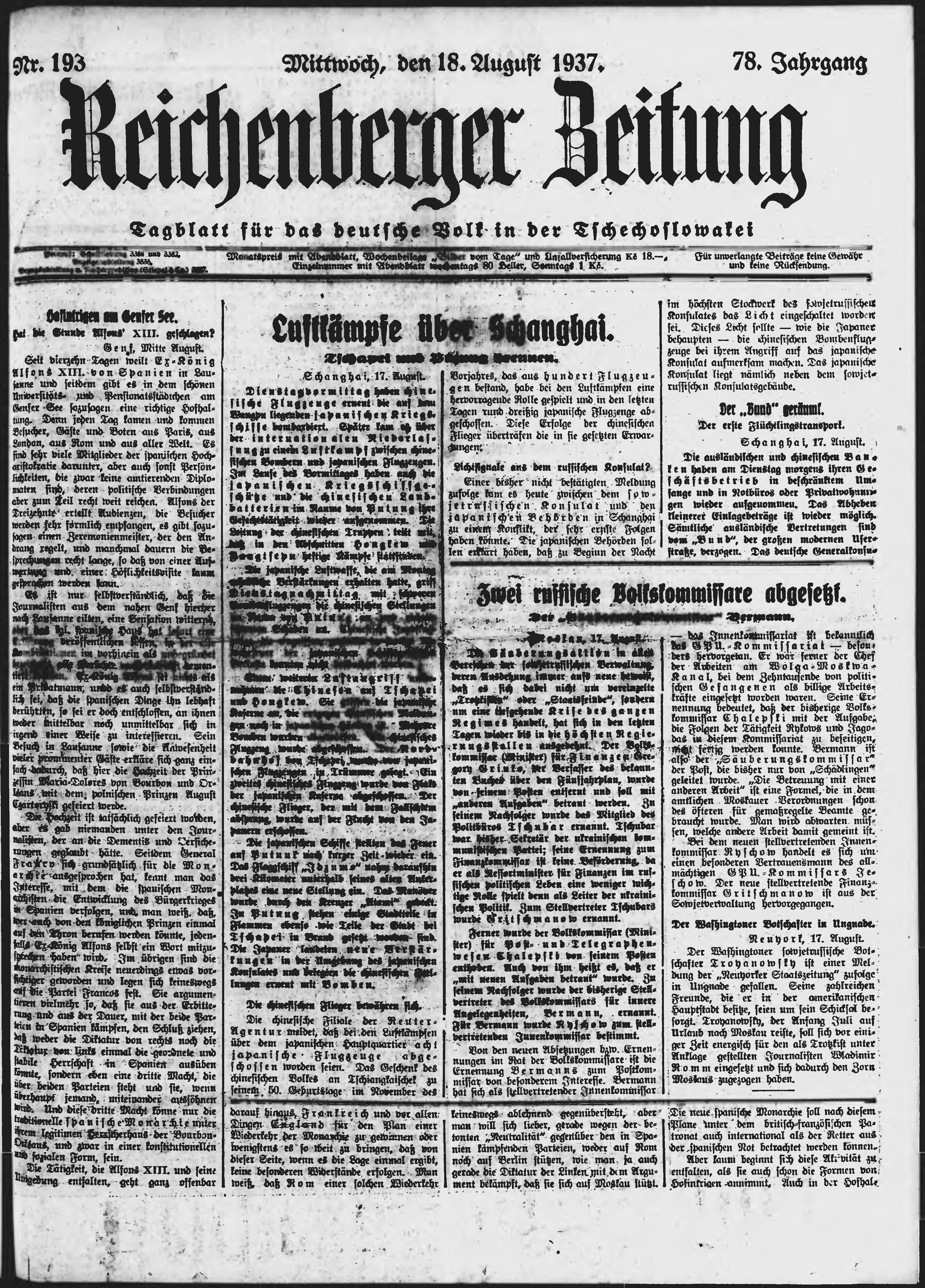 * Datum vydání výtisku: 18.8.1937 Číslo výtisku: 193 Poznámky k výtisku: ranní vydání;