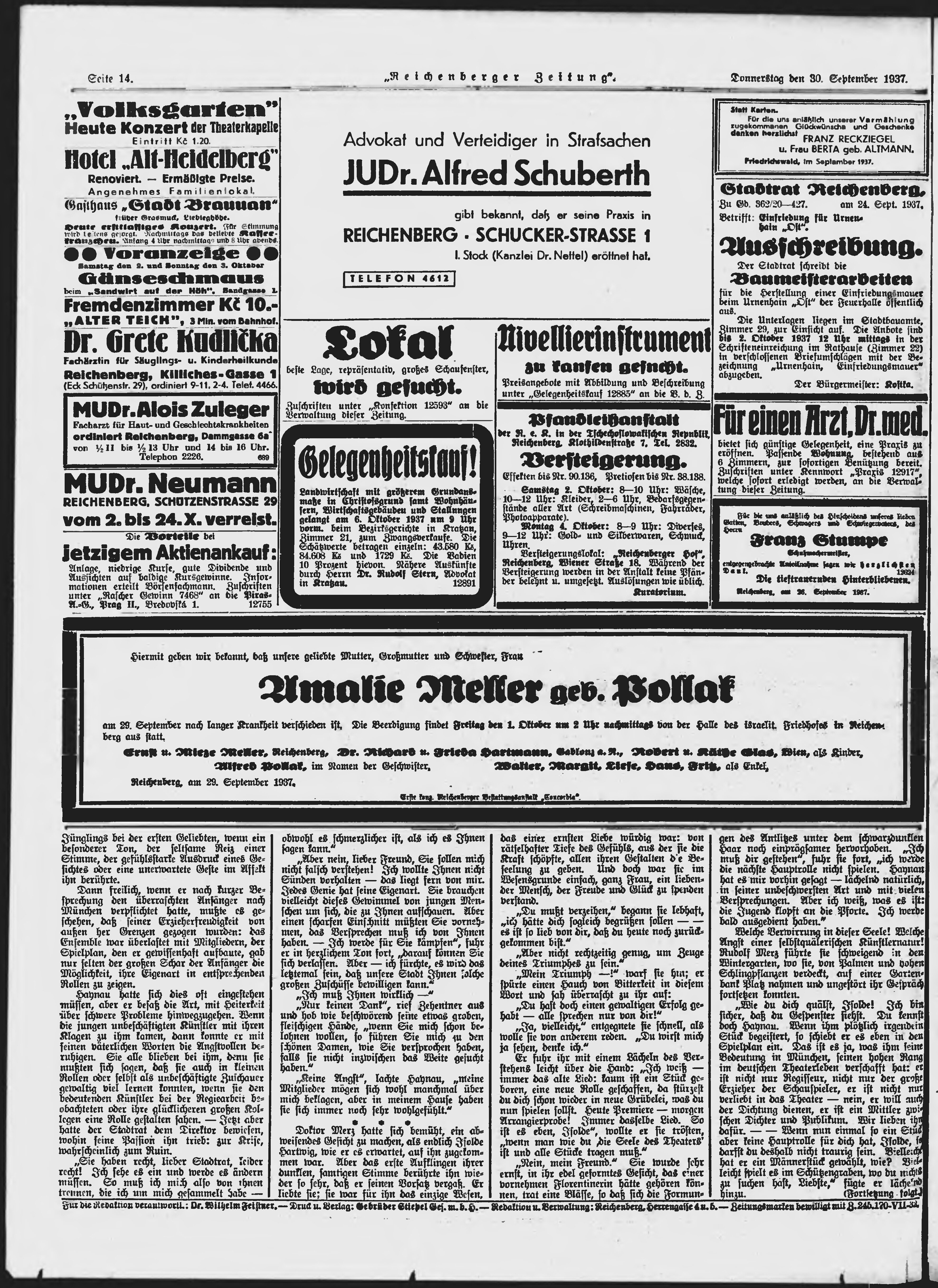 * Datum vydání výtisku: 30.9.1937 Číslo výtisku: 230 Poznámky k výtisku: ranní vydání;