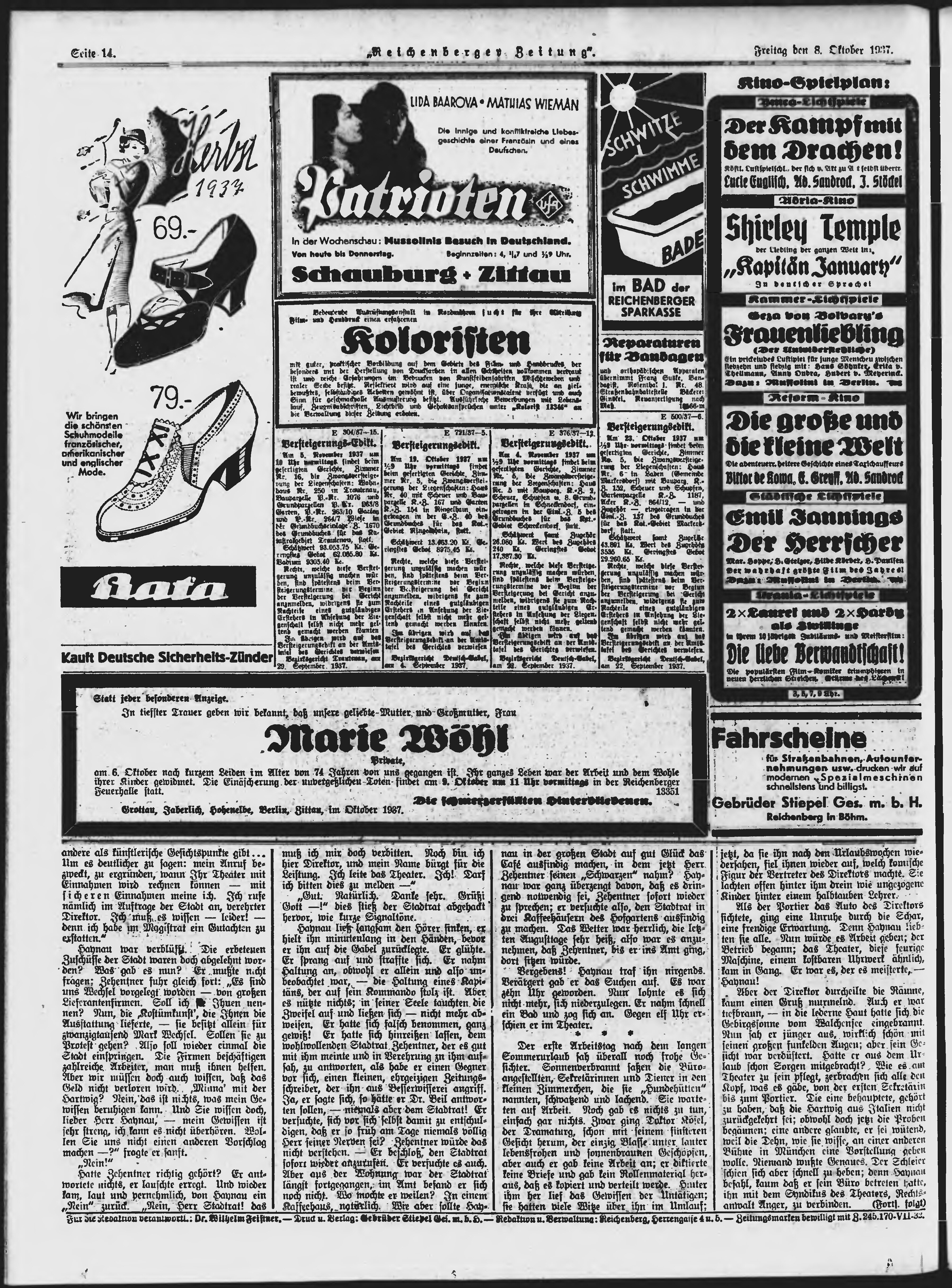 * Datum vydání výtisku: 8.10.1937 Číslo výtisku: 237 Poznámky k výtisku: ranní vydání;