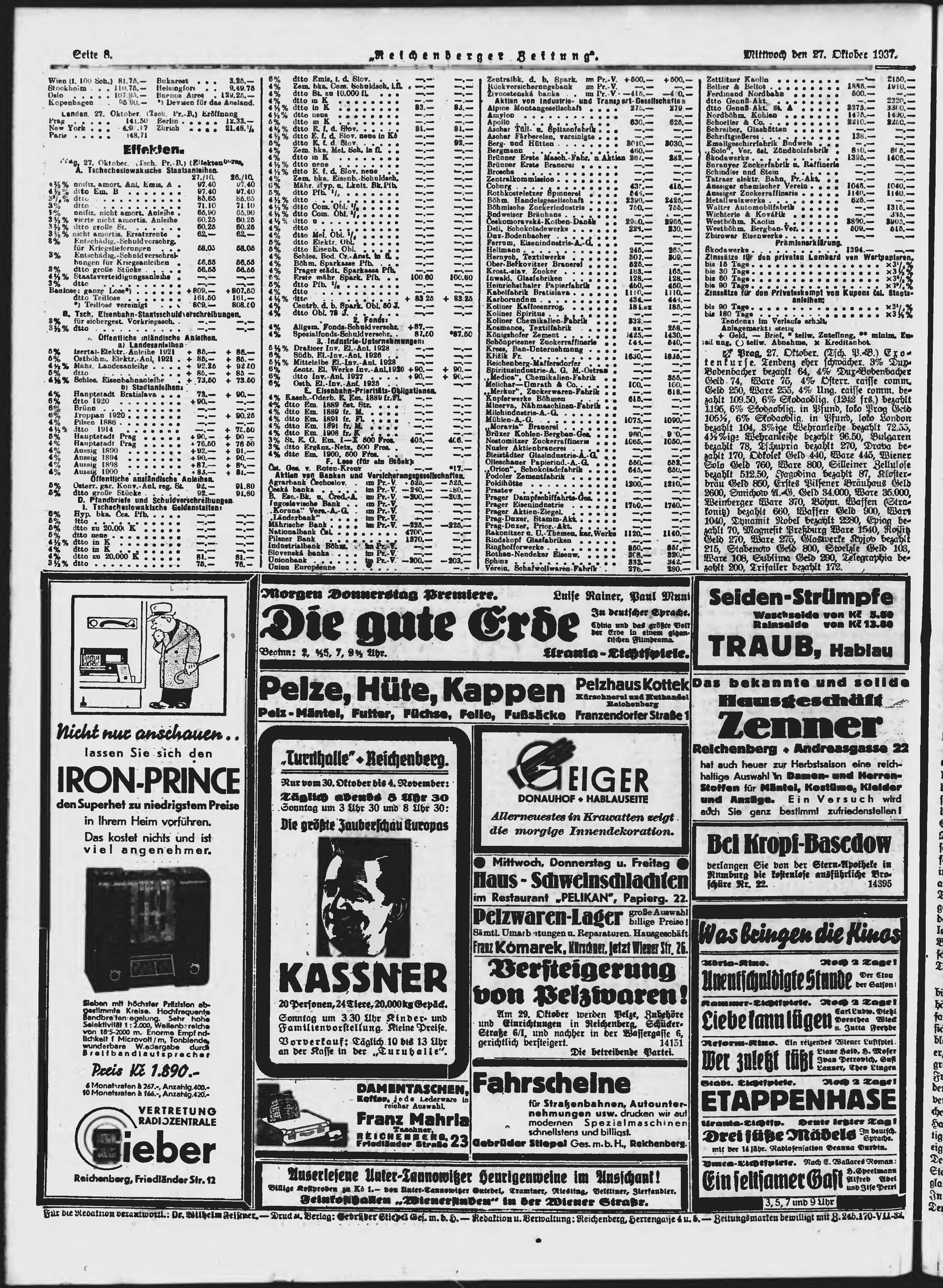 * Datum vydání výtisku: 27.10.1937 Číslo výtisku: 254 Typ výtisku: příloha Poznámky k výtisku: večerní vydání;