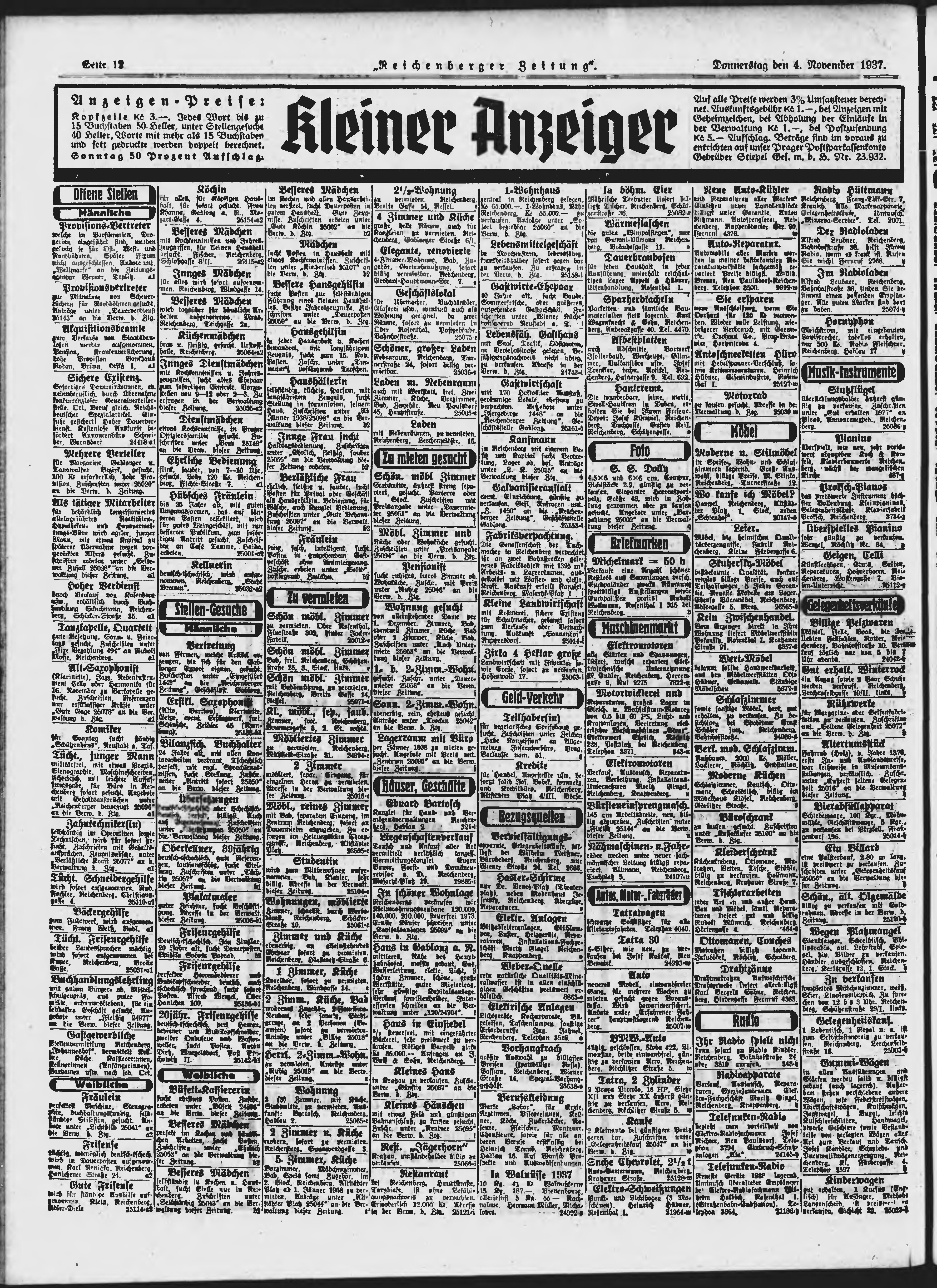 * Datum vydání výtisku: 4.11.1937 Číslo výtisku: 259 Poznámky k výtisku: ranní vydání;