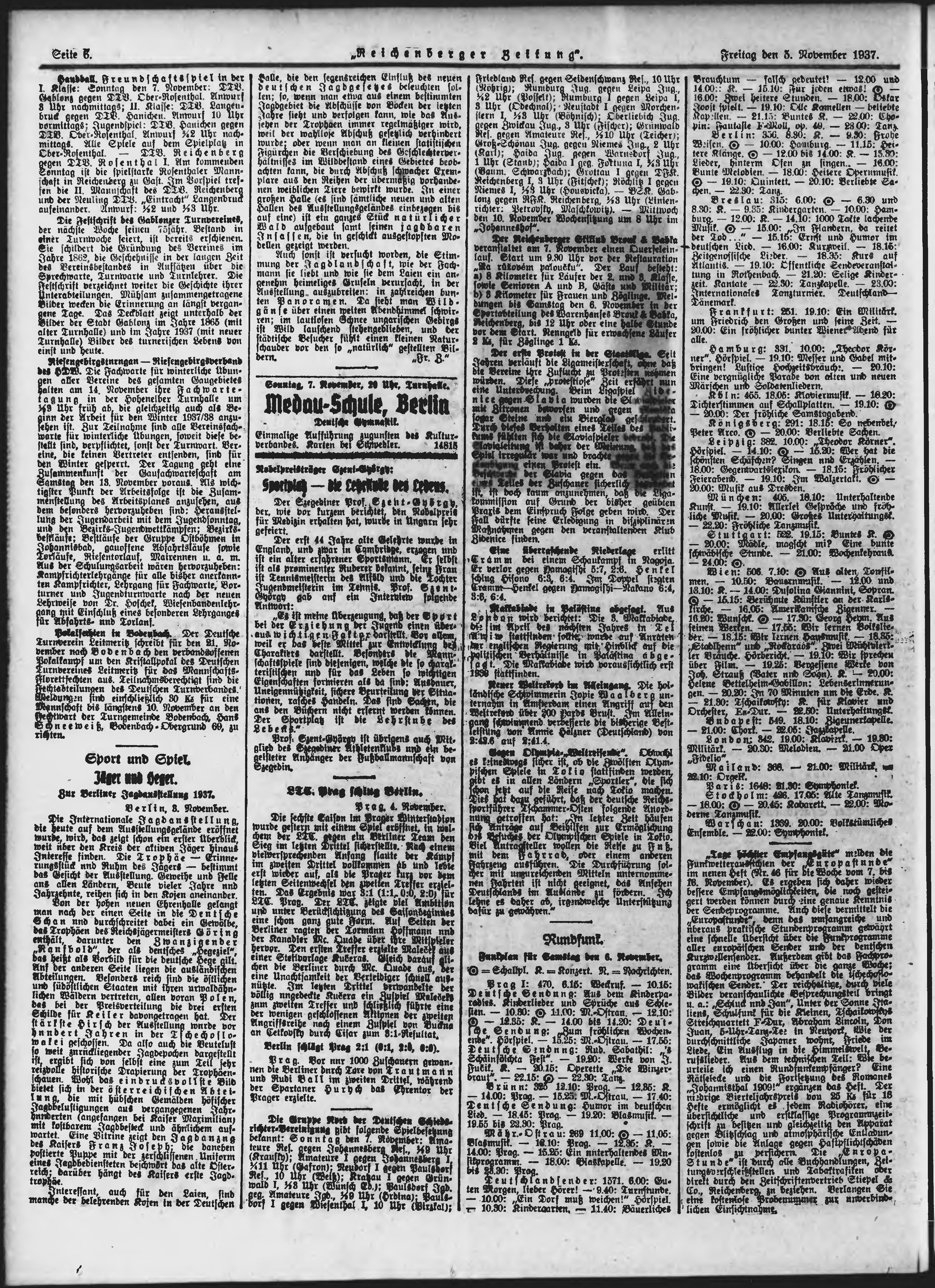 * Datum vydání výtisku: 5.11.1937 Číslo výtisku: 260 Poznámky k výtisku: ranní vydání;