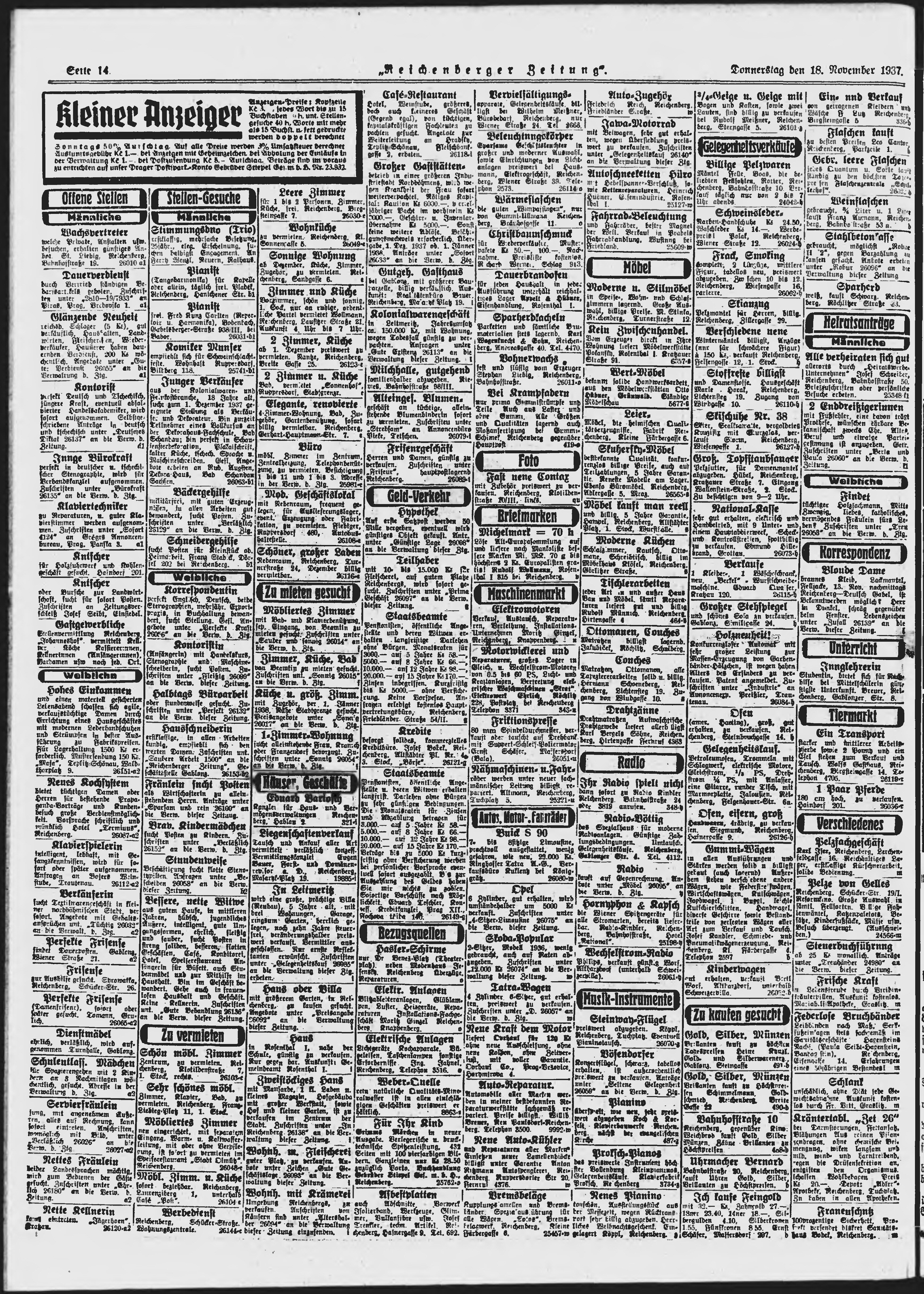 * Datum vydání výtisku: 18.11.1937 Číslo výtisku: 271 Poznámky k výtisku: ranní vydání;