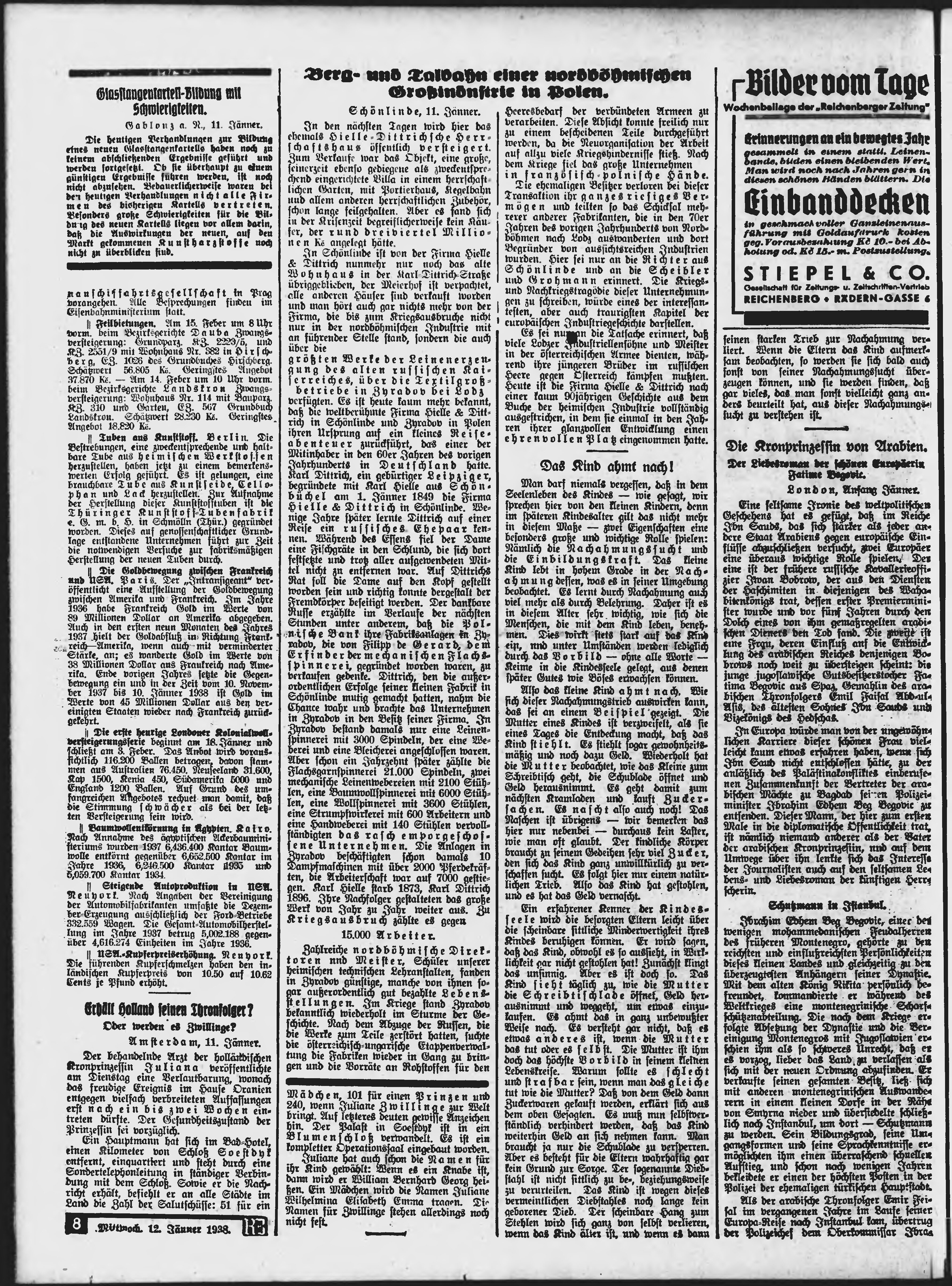 * Datum vydání výtisku: 12.1.1938 Číslo výtisku: 9 Poznámky k výtisku: ranní vydání;