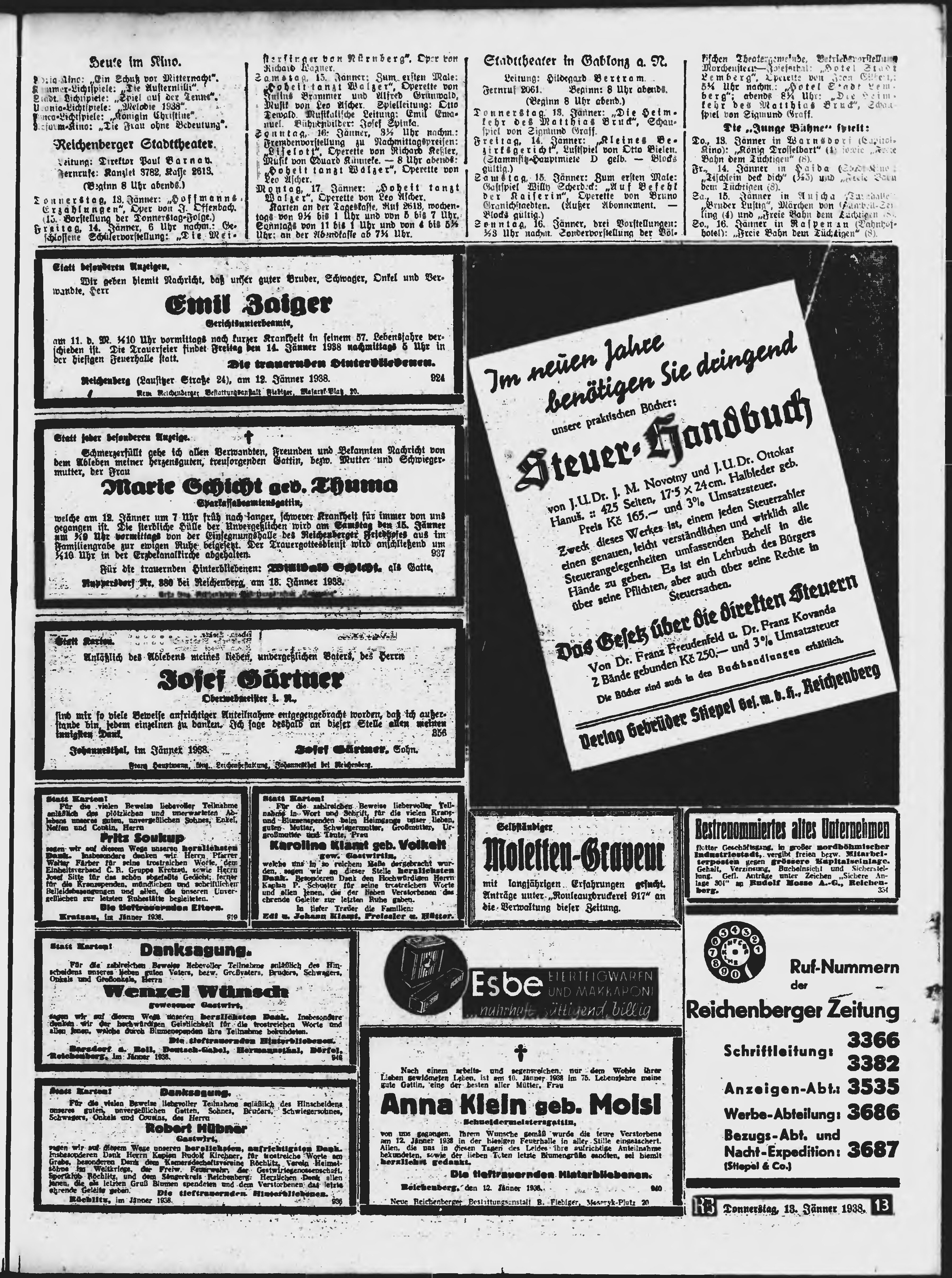 * Datum vydání výtisku: 13.1.1938 Číslo výtisku: 10 Poznámky k výtisku: ranní vydání;