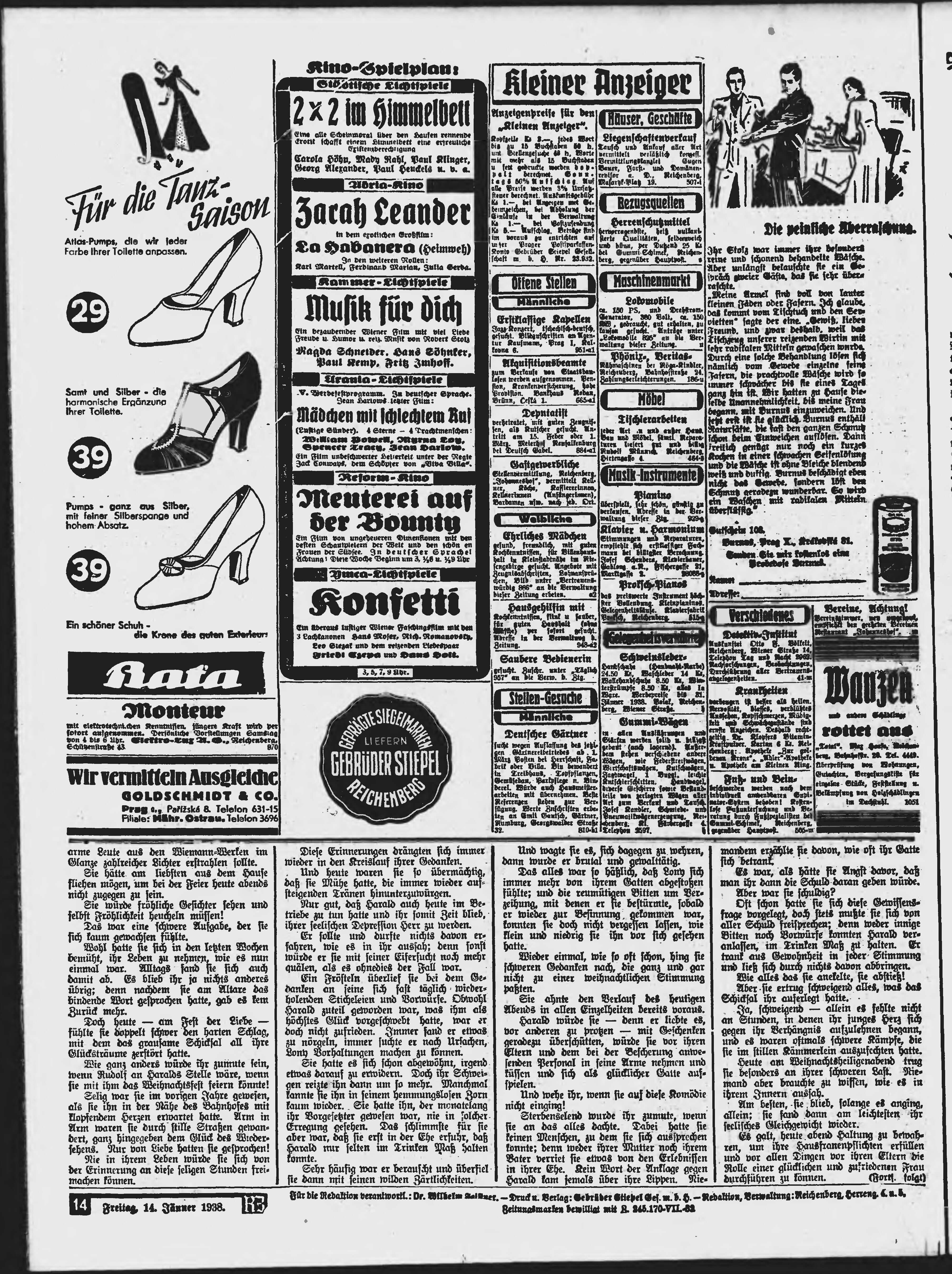 * Datum vydání výtisku: 14.1.1938 Číslo výtisku: 11 Poznámky k výtisku: ranní vydání;