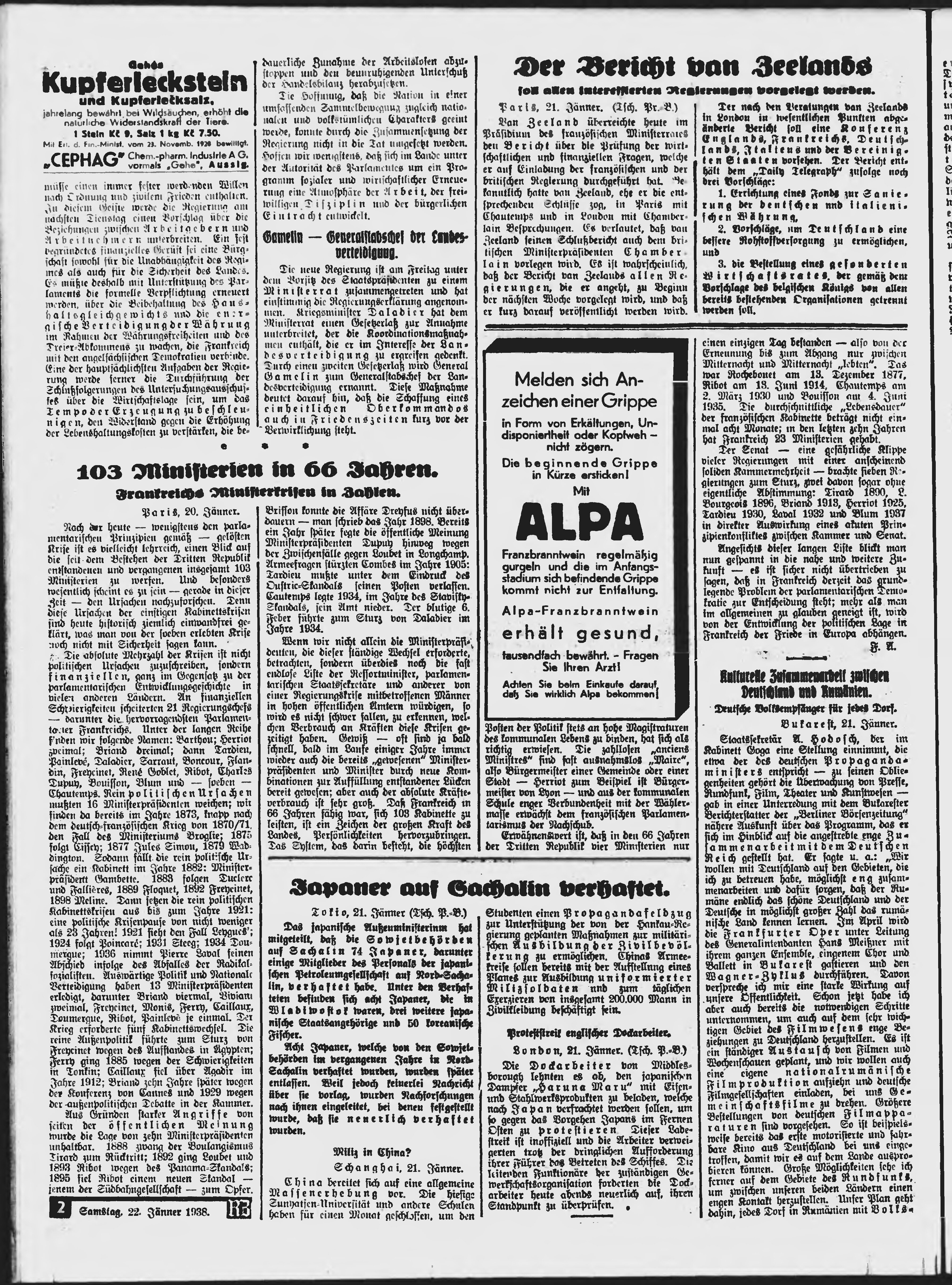 * Datum vydání výtisku: 22.1.1938 Číslo výtisku: 18 Poznámky k výtisku: ranní vydání;