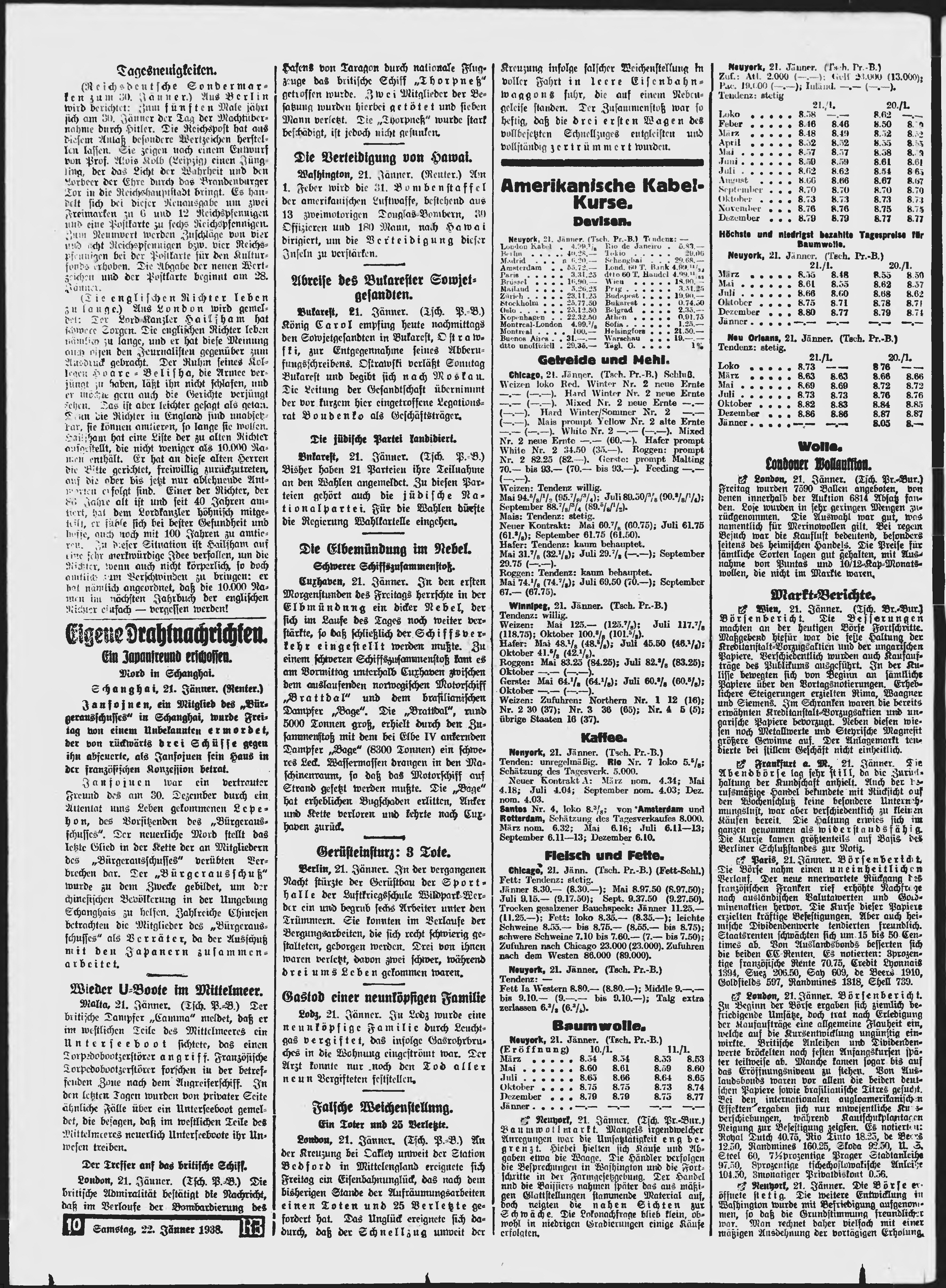 * Datum vydání výtisku: 22.1.1938 Číslo výtisku: 18 Poznámky k výtisku: ranní vydání;