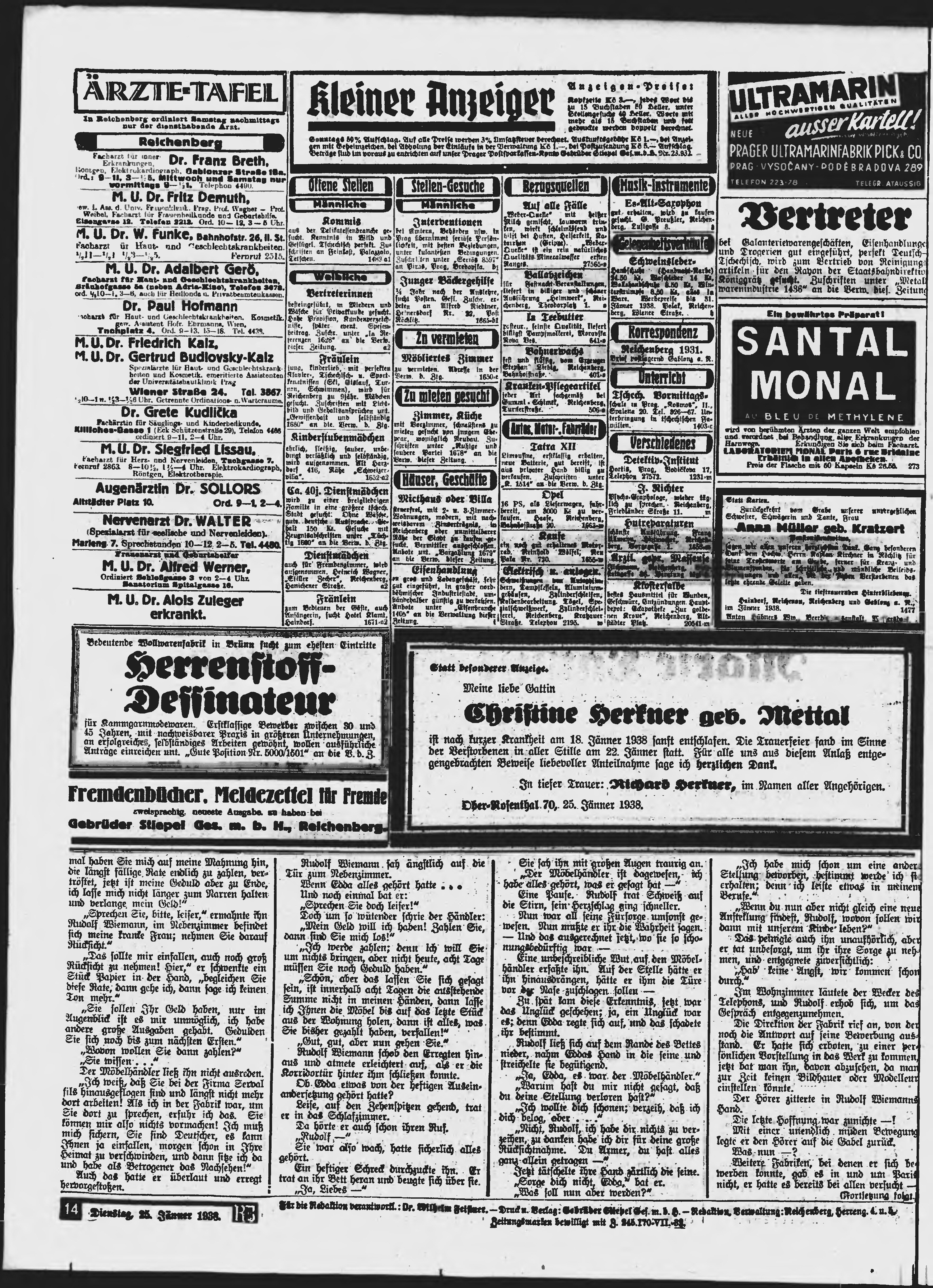 * Datum vydání výtisku: 25.1.1938 Číslo výtisku: 20 Poznámky k výtisku: ranní vydání;