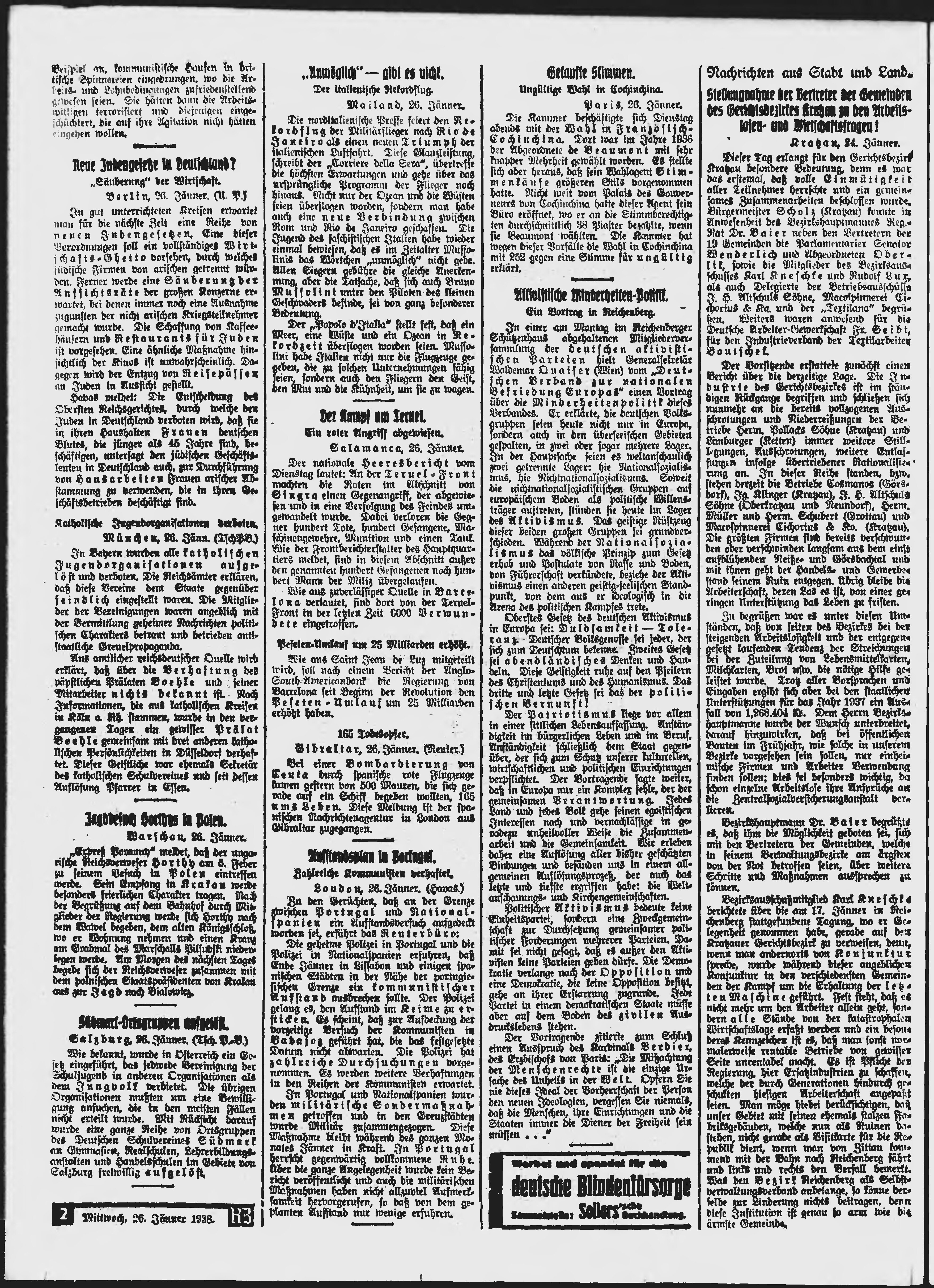 * Datum vydání výtisku: 26.1.1938 Číslo výtisku: 22 Typ výtisku: příloha Poznámky k výtisku: večerní vydání;