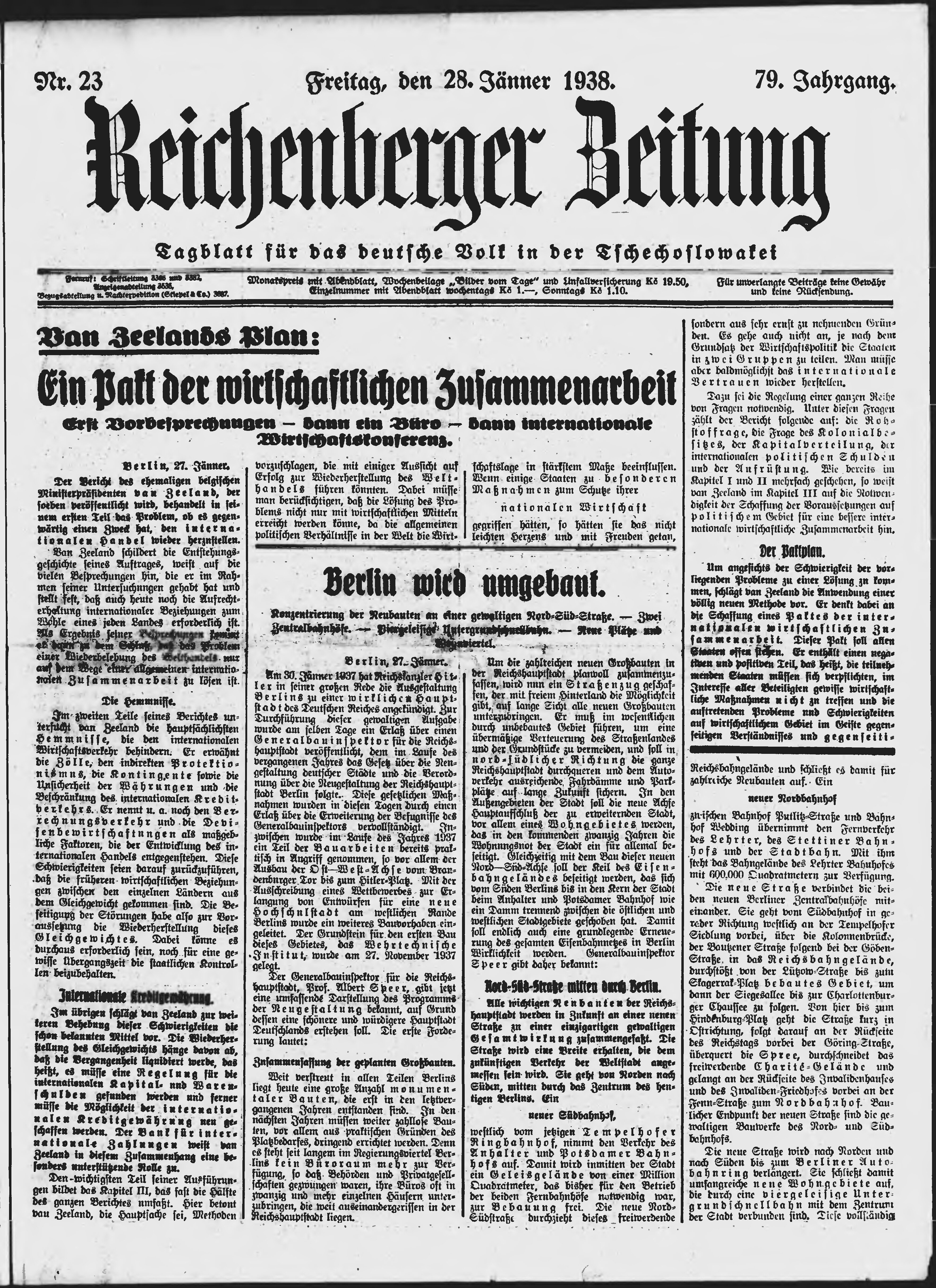 * Datum vydání výtisku: 28.1.1938 Číslo výtisku: 23 Poznámky k výtisku: ranní vydání;