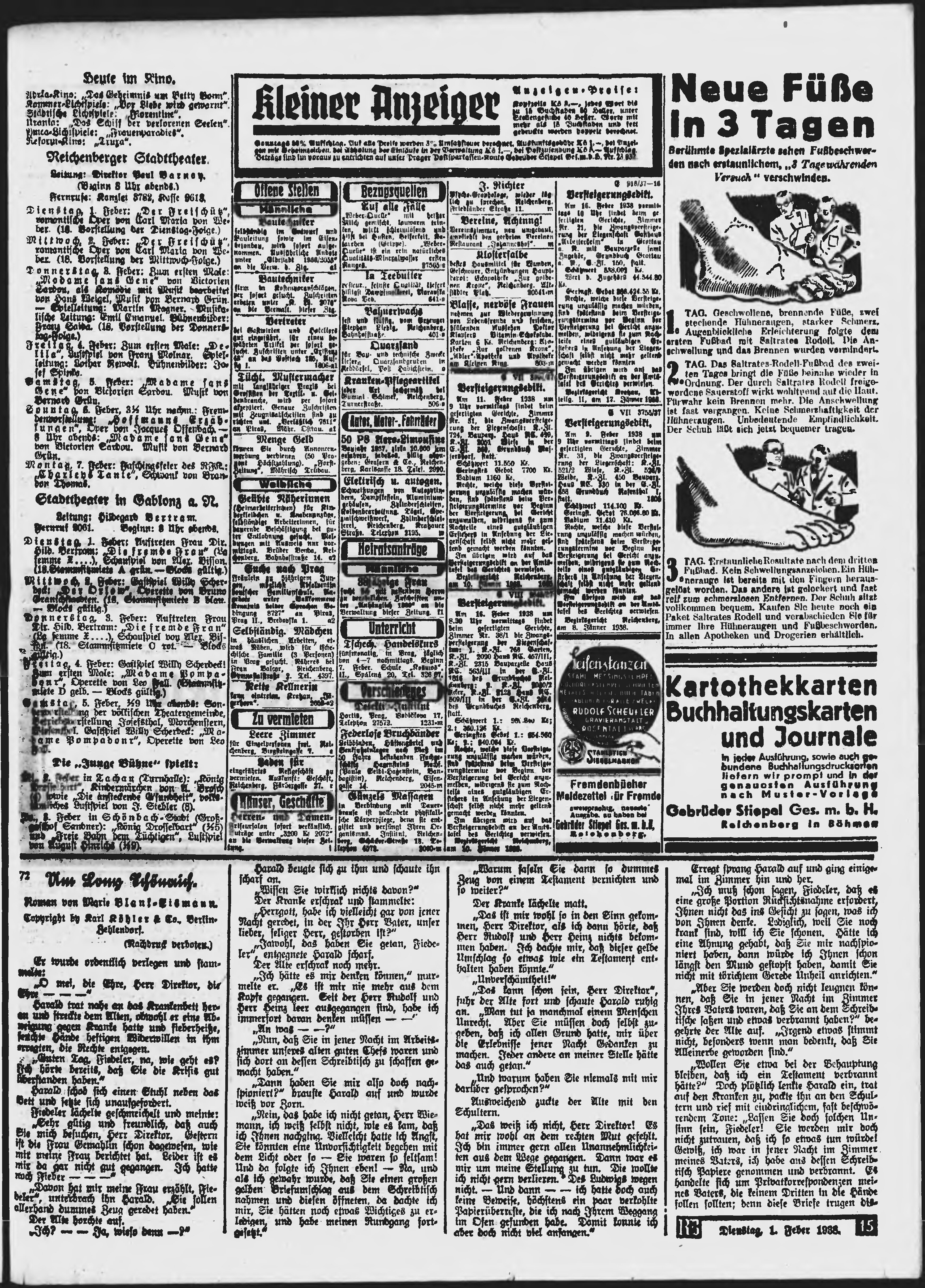 * Datum vydání výtisku: 1.2.1938 Číslo výtisku: 26 Poznámky k výtisku: ranní vydání;