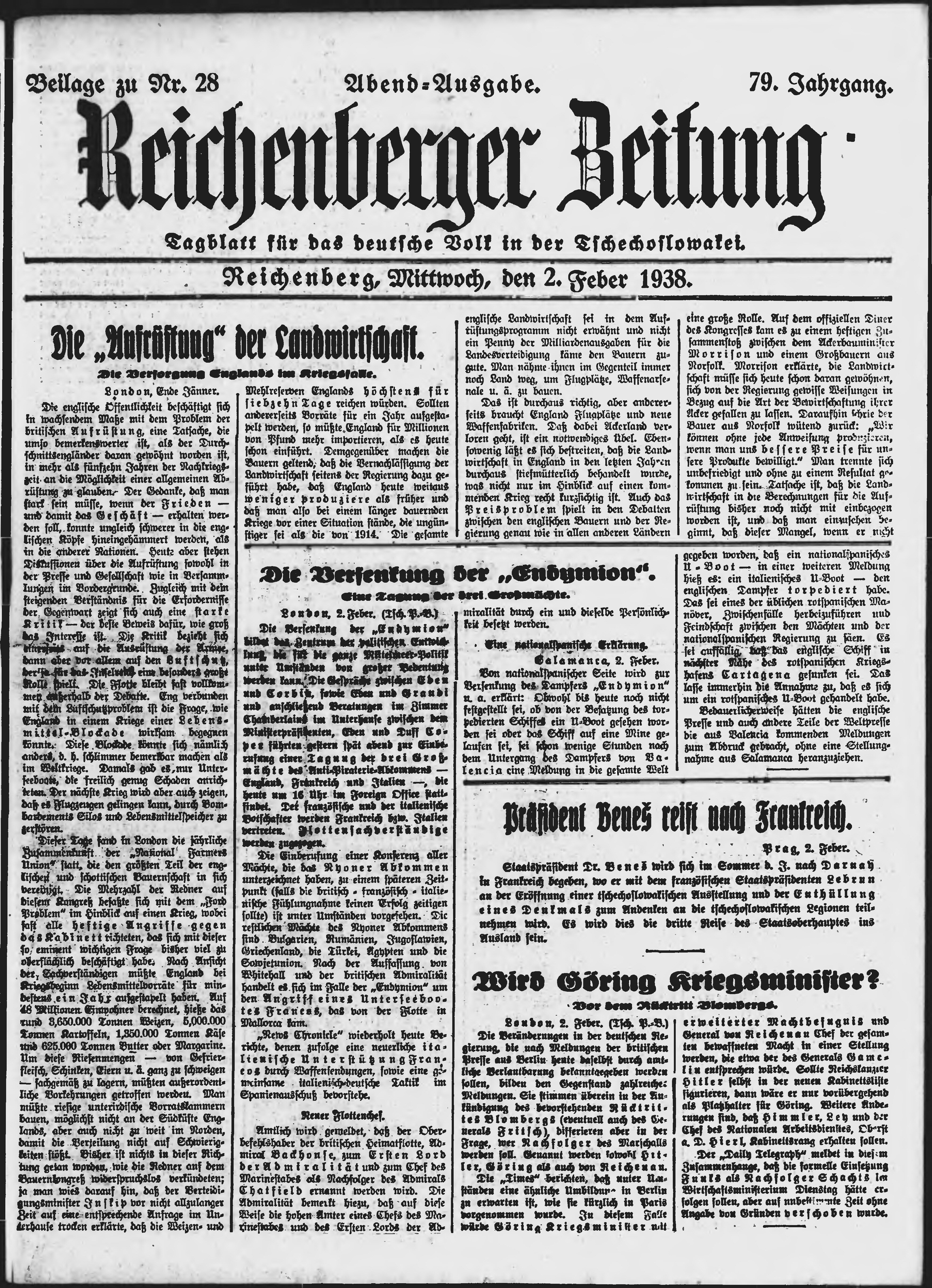 * Datum vydání výtisku: 2.2.1938 Číslo výtisku: 28 Typ výtisku: příloha Poznámky k výtisku: večerní vydání;