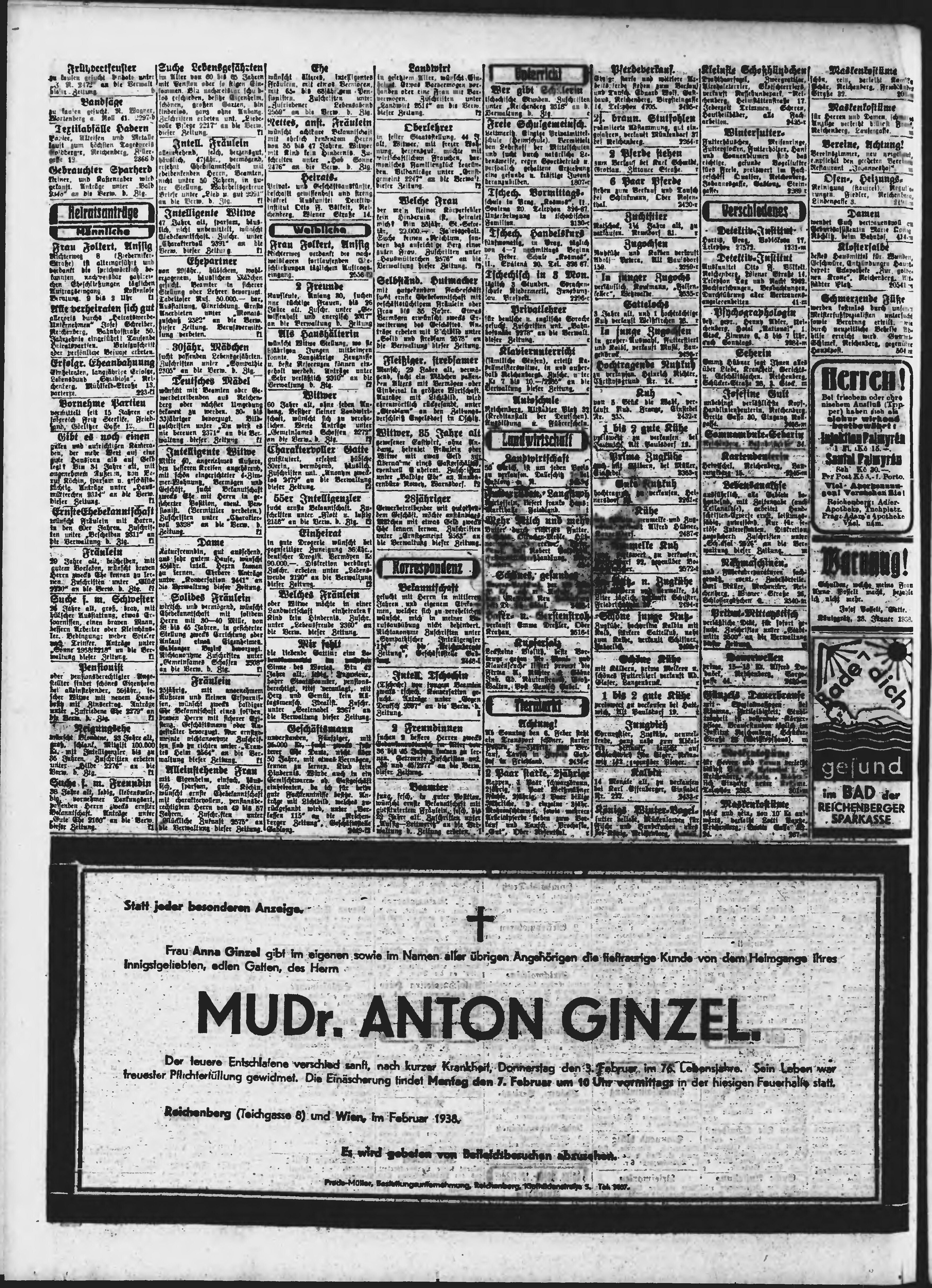 * Datum vydání výtisku: 6.2.1938 Číslo výtisku: 31 Poznámky k výtisku: ranní vydání;
