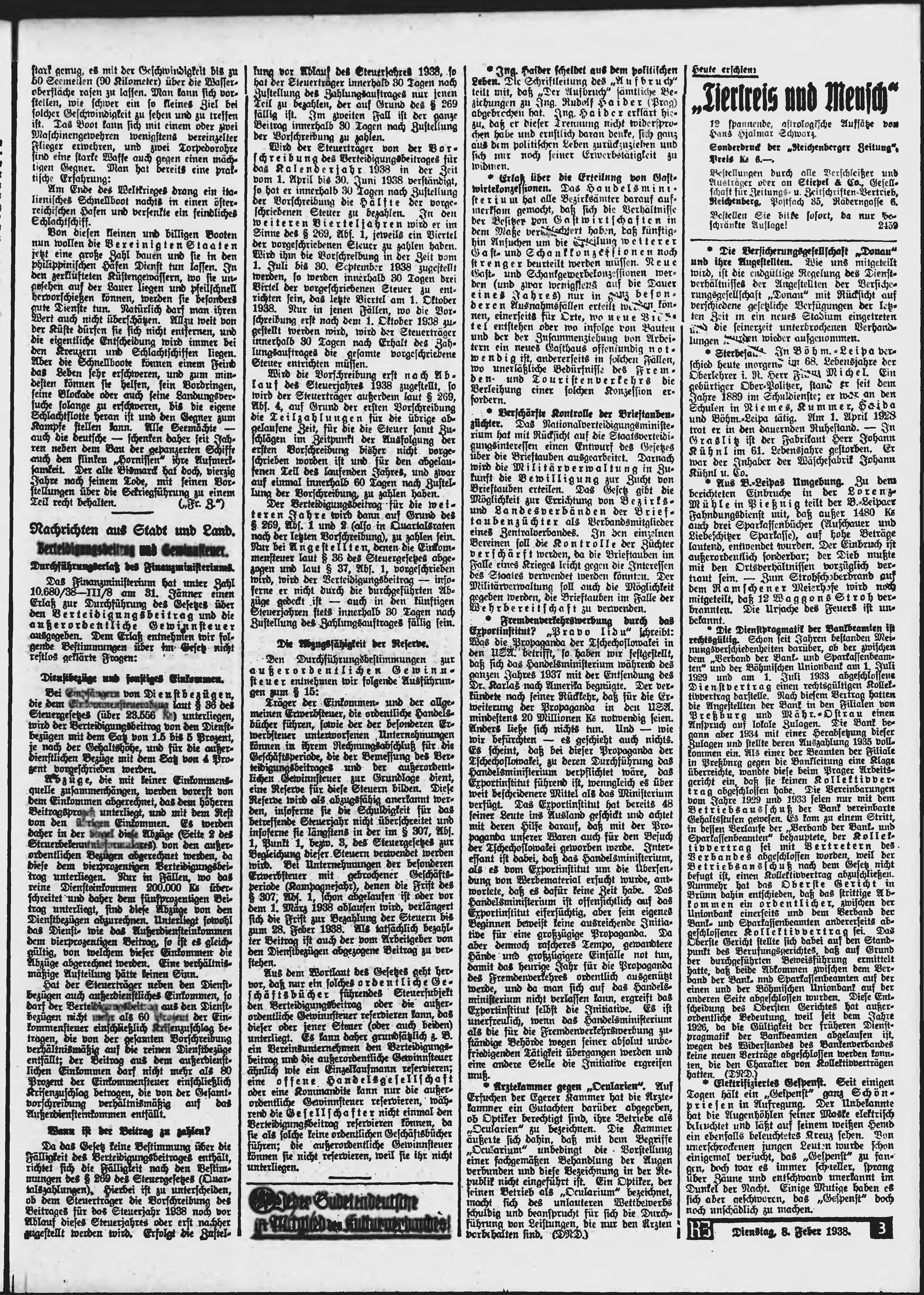 * Datum vydání výtisku: 8.2.1938 Číslo výtisku: 33 Typ výtisku: příloha Poznámky k výtisku: večerní vydání;