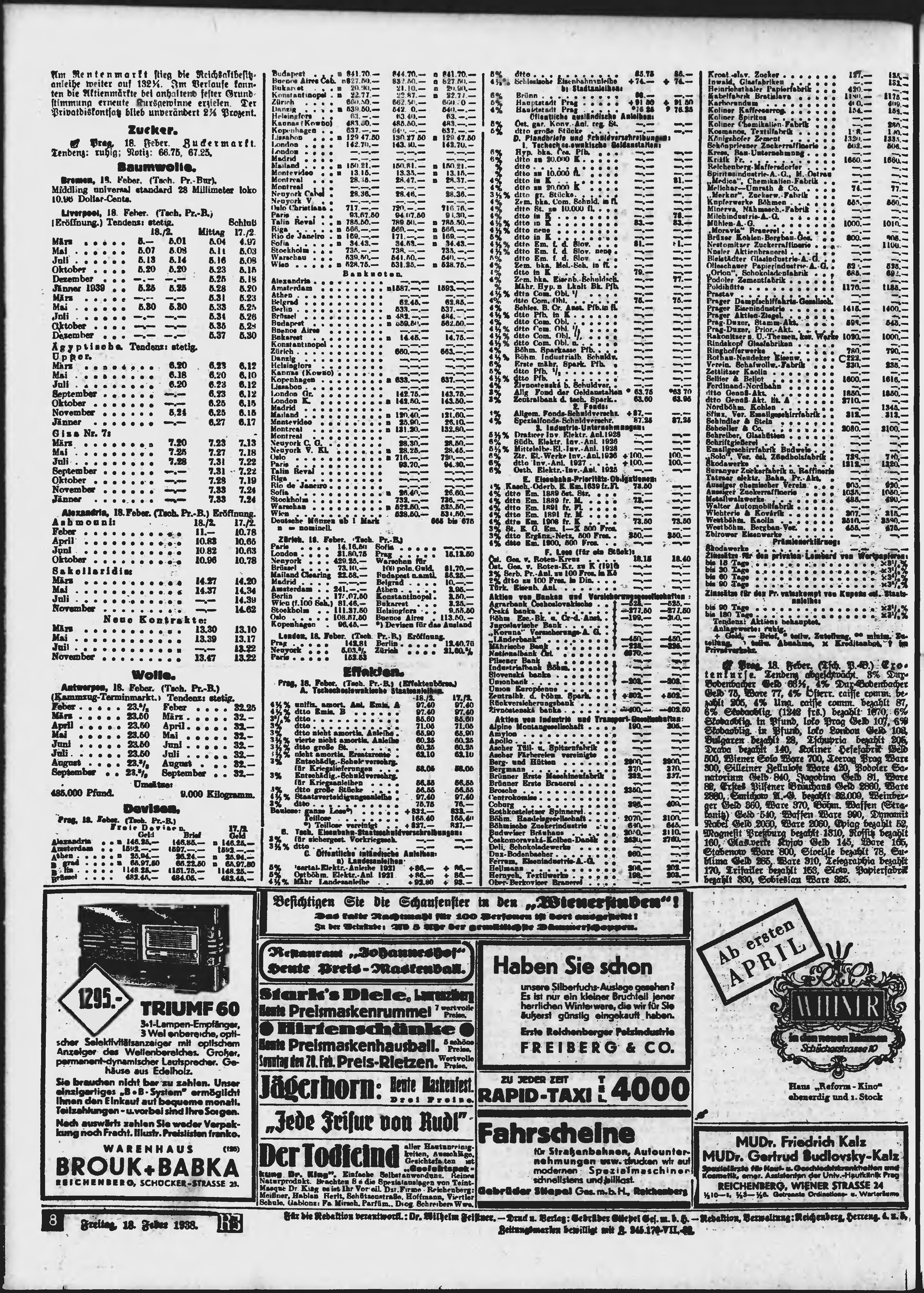 * Datum vydání výtisku: 18.2.1938 Číslo výtisku: 42 Typ výtisku: příloha Poznámky k výtisku: večerní vydání;
