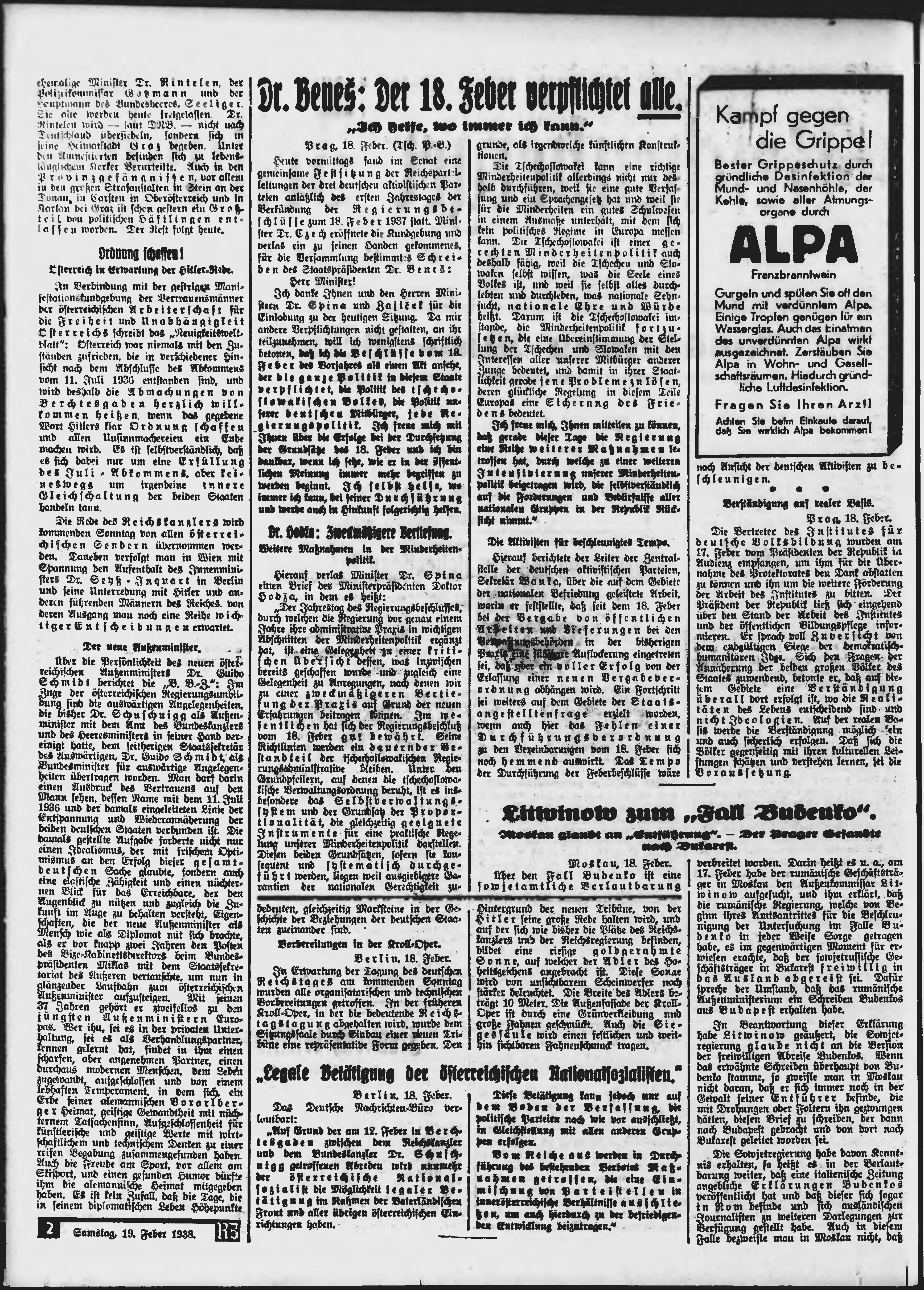 * Datum vydání výtisku: 19.2.1938 Číslo výtisku: 42 Poznámky k výtisku: ranní vydání;