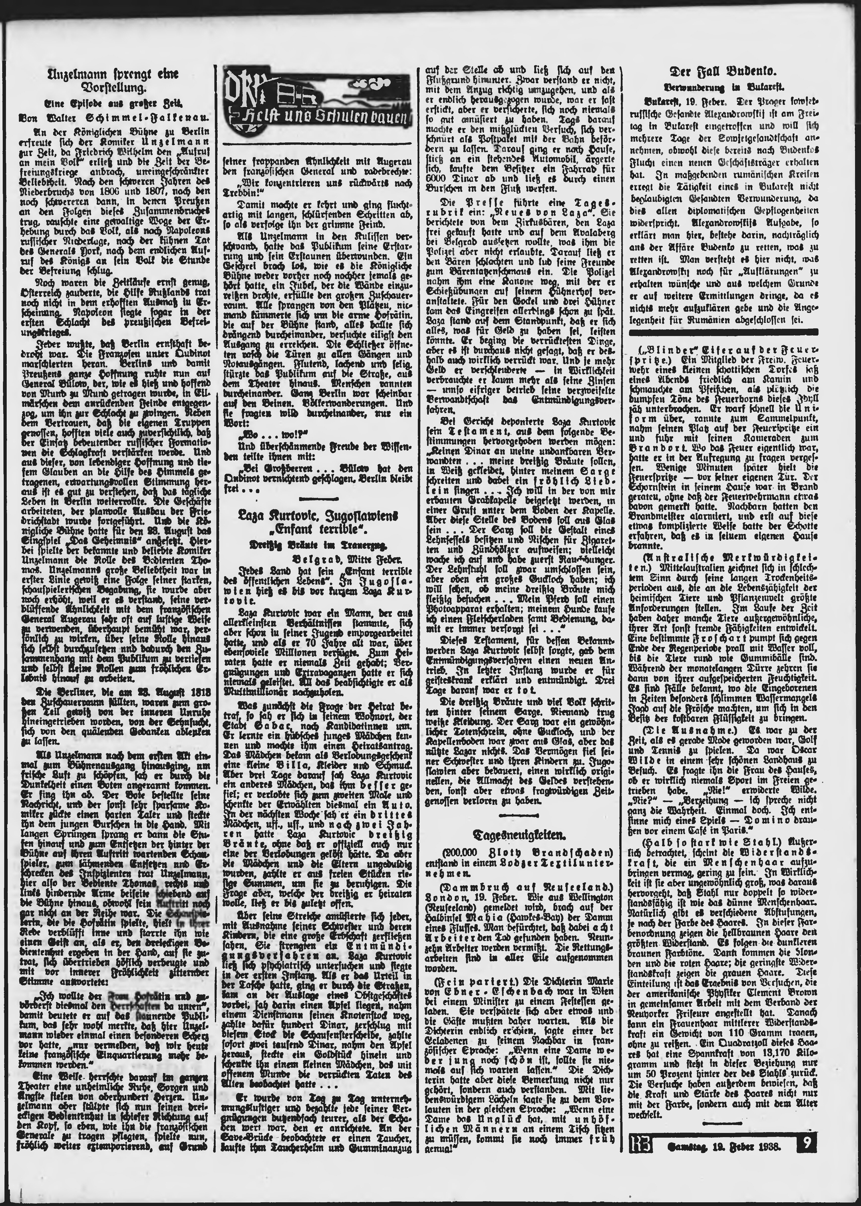 * Datum vydání výtisku: 19.2.1938 Číslo výtisku: 43 Typ výtisku: příloha Poznámky k výtisku: večerní vydání;