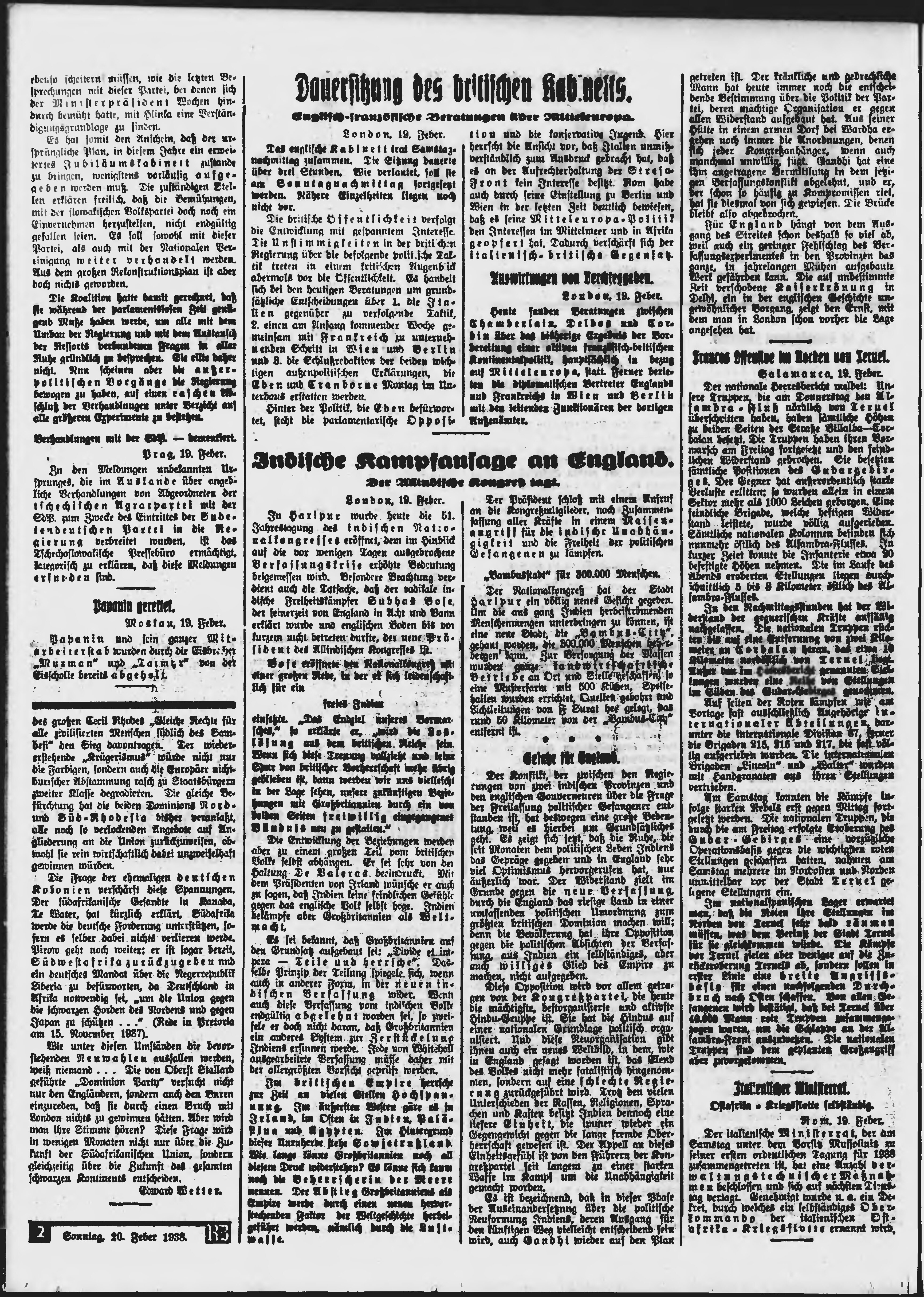 * Datum vydání výtisku: 20.2.1938 Číslo výtisku: 43 Poznámky k výtisku: ranní vydání;