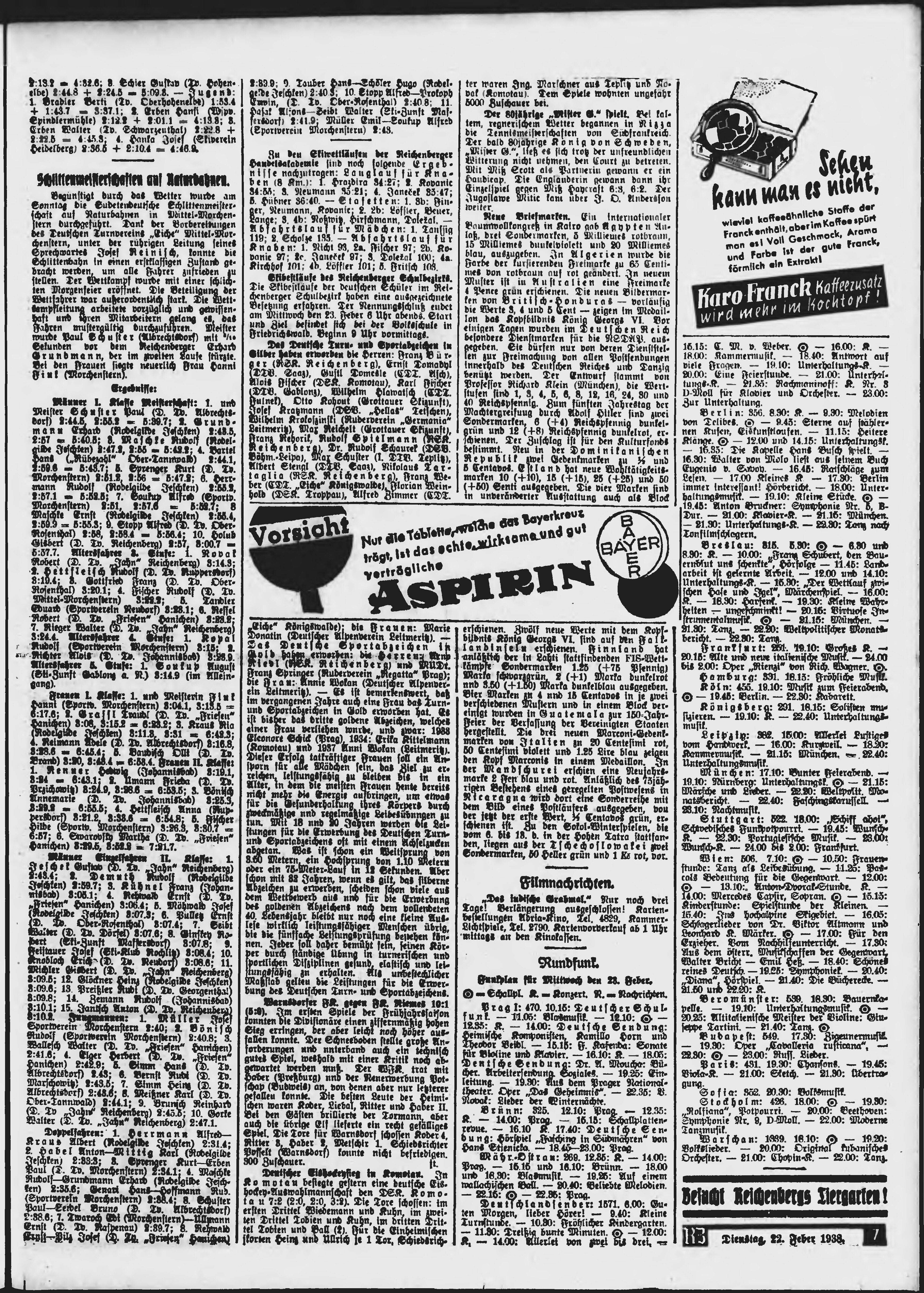 * Datum vydání výtisku: 22.2.1938 Číslo výtisku: 44 Poznámky k výtisku: ranní vydání;