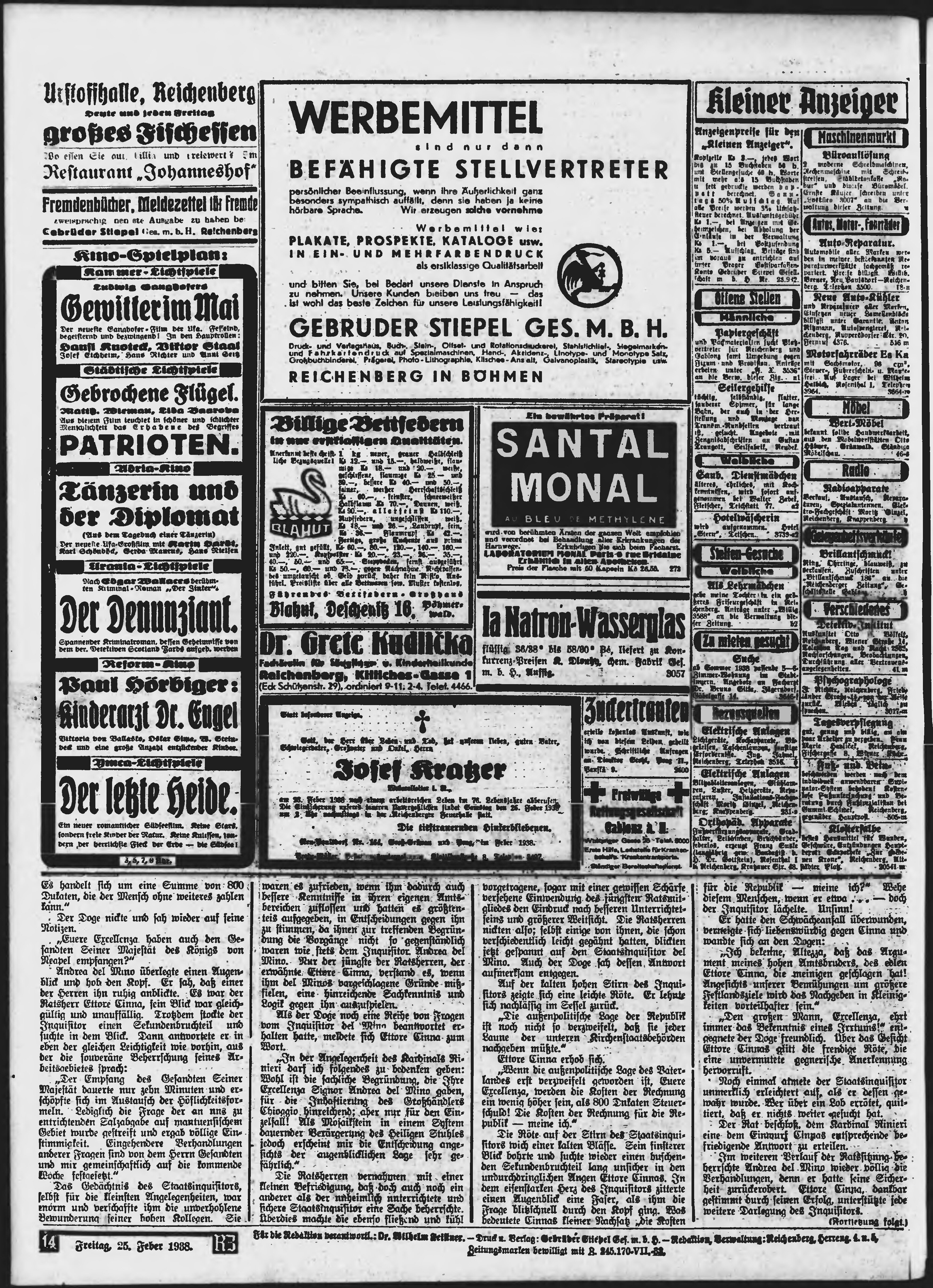 * Datum vydání výtisku: 25.2.1938 Číslo výtisku: 47 Poznámky k výtisku: ranní vydání;