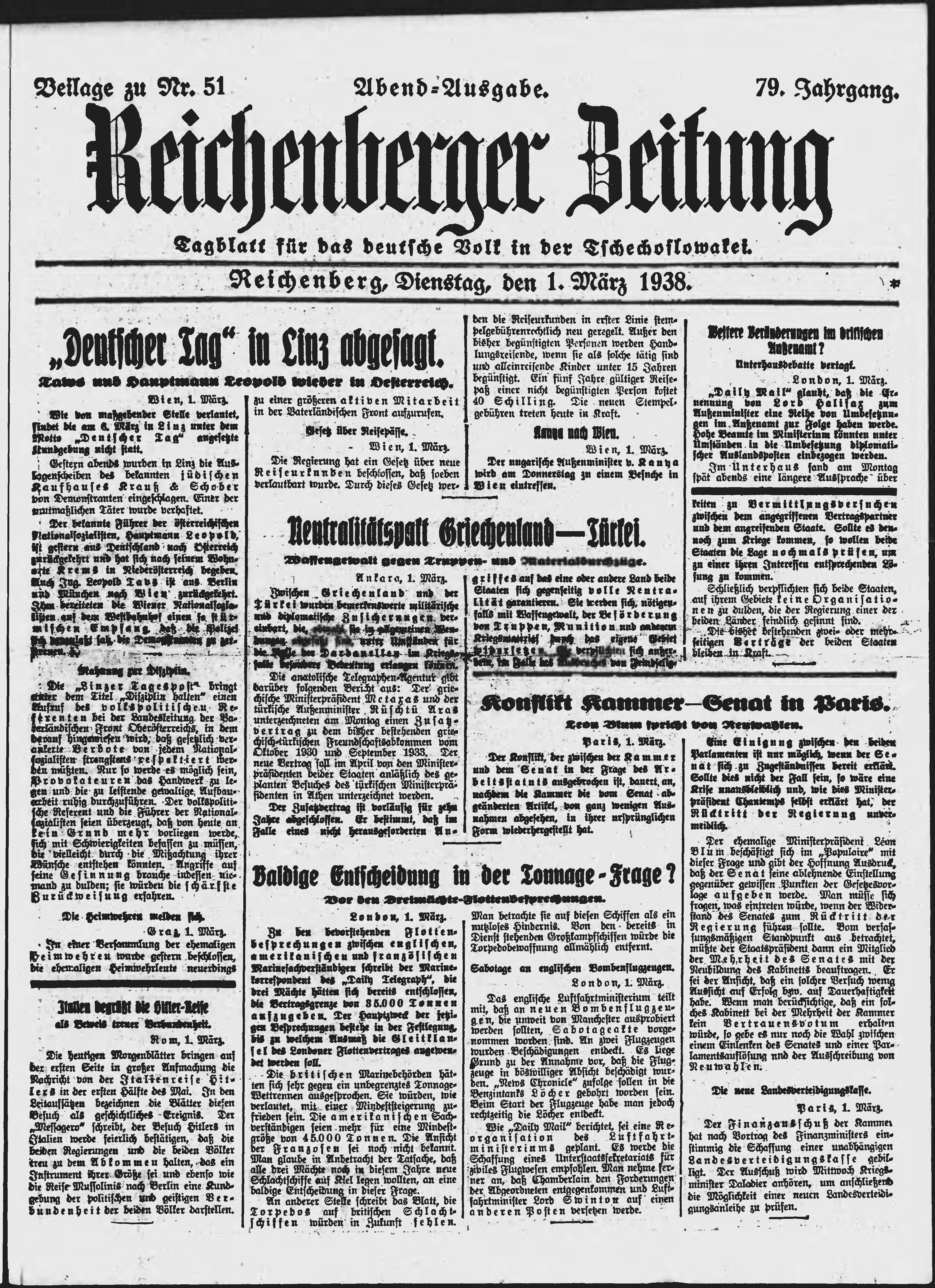 * Datum vydání výtisku: 1.3.1938 Číslo výtisku: 51 Typ výtisku: příloha Poznámky k výtisku: večerní vydání;