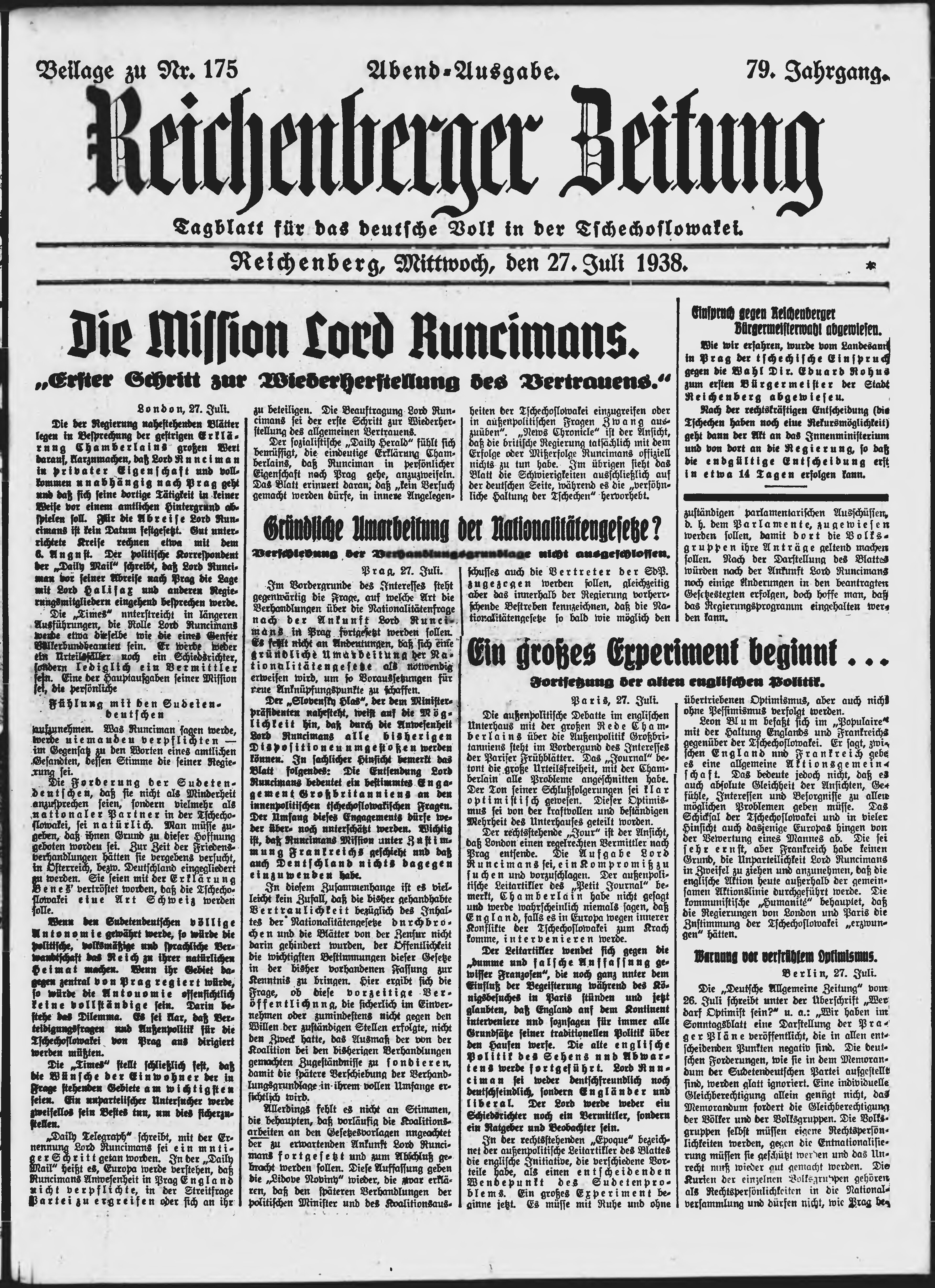 * Datum vydání výtisku: 27.7.1938 Číslo výtisku: 175 Typ výtisku: příloha Poznámky k výtisku: večerní vydání;
