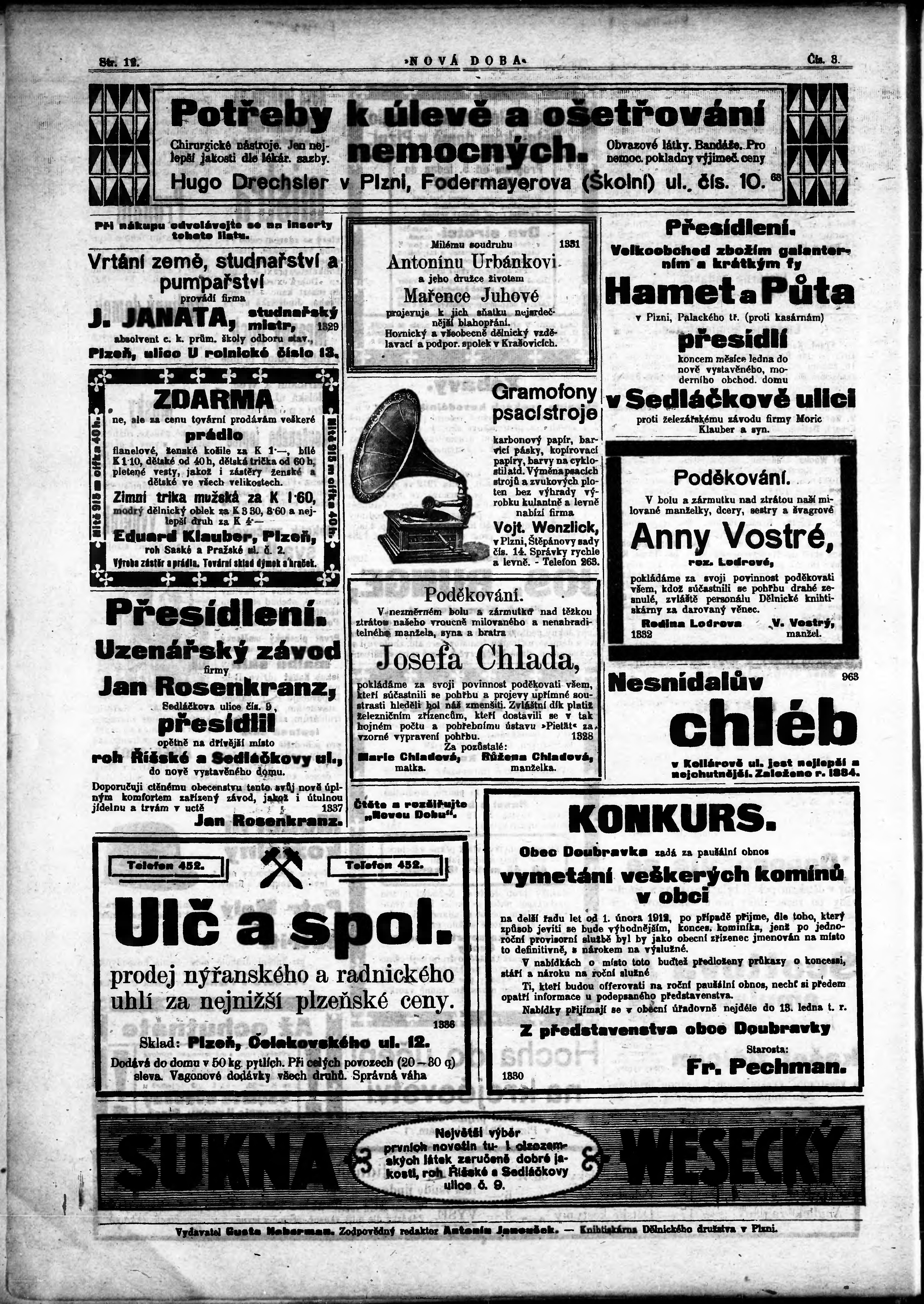 * Datum vydání výtisku: 5.1.1912 Číslo výtisku: 3