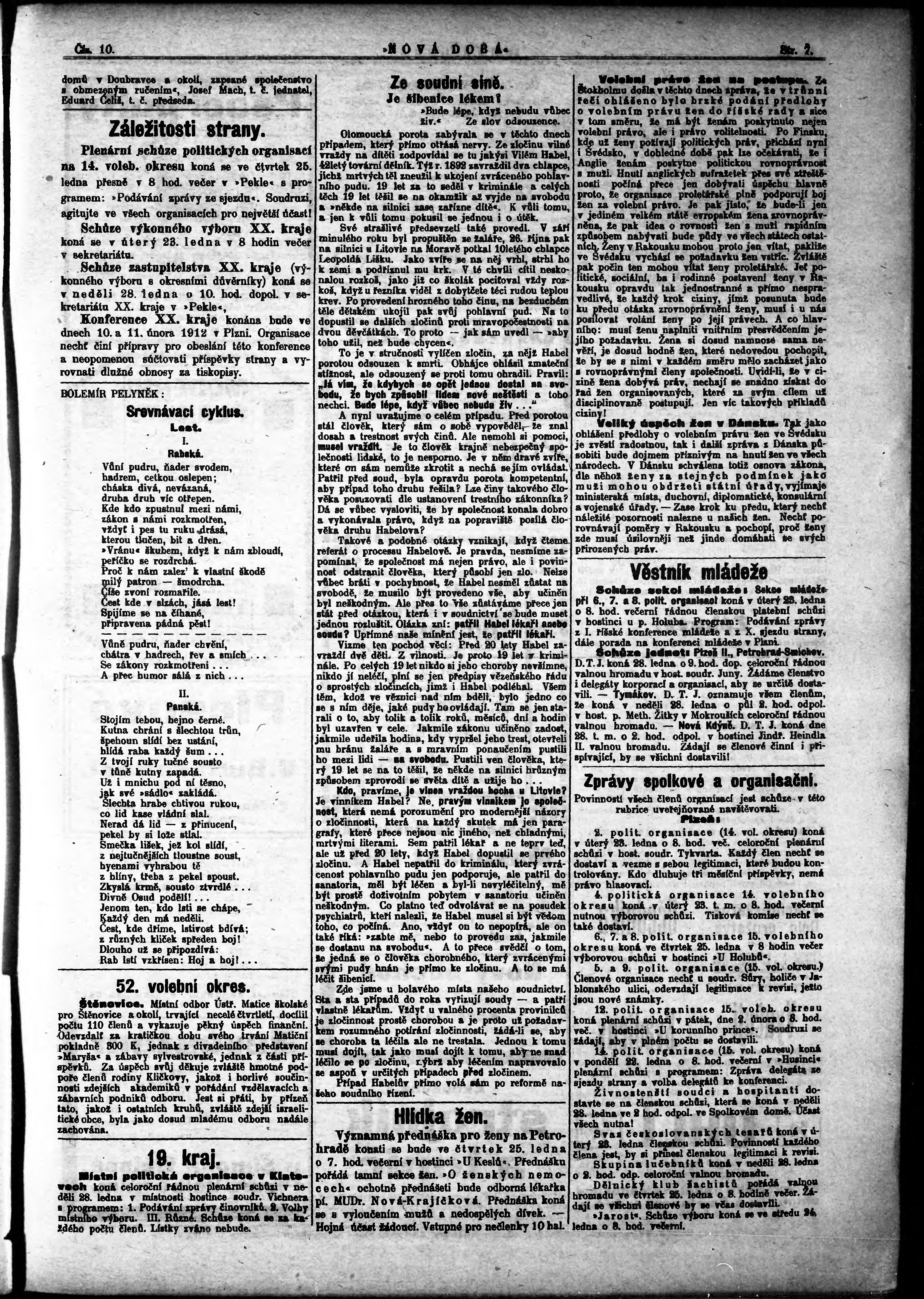 * Datum vydání výtisku: 22.1.1912 Číslo výtisku: 10