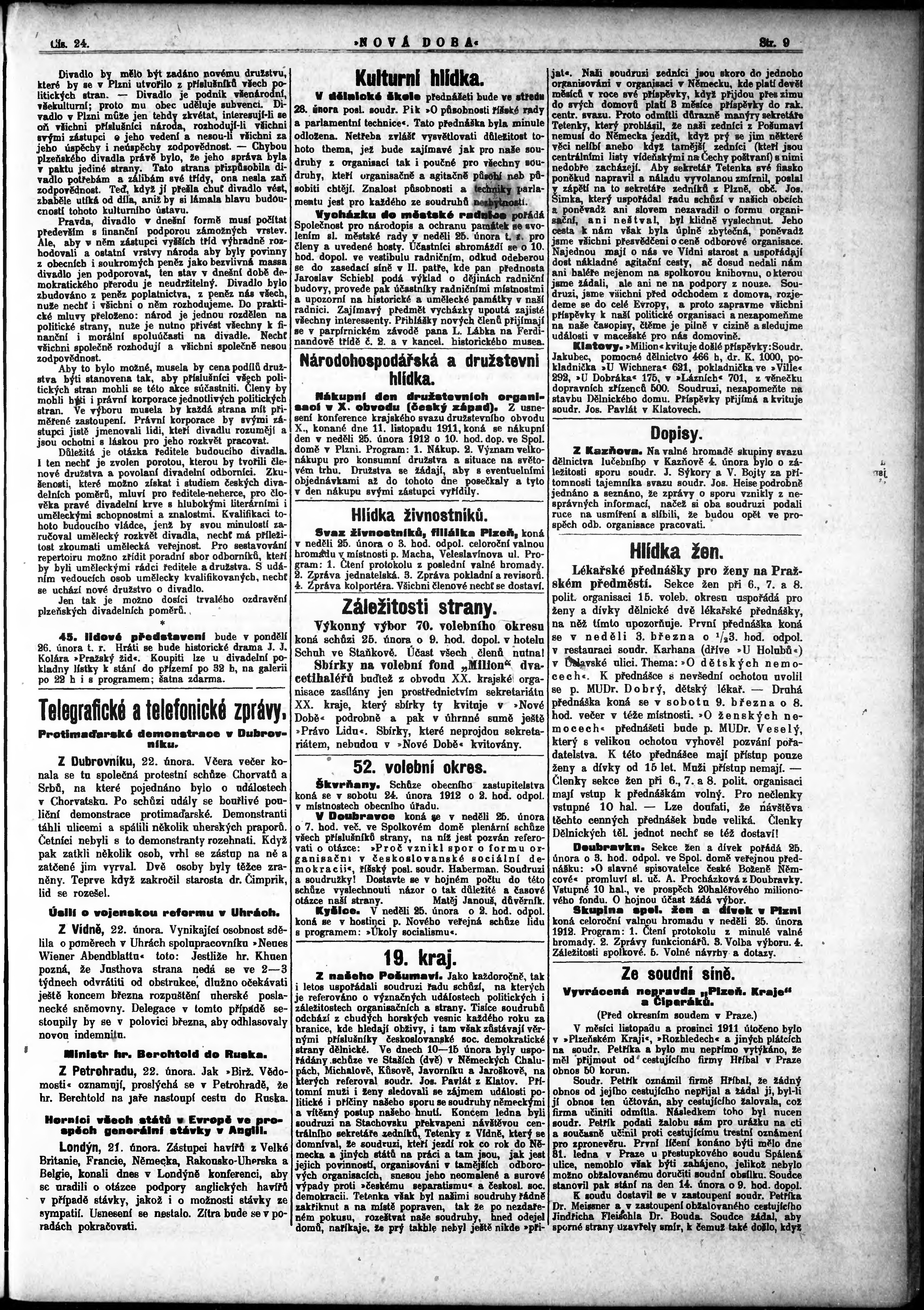 * Datum vydání výtisku: 23.2.1912 Číslo výtisku: 24