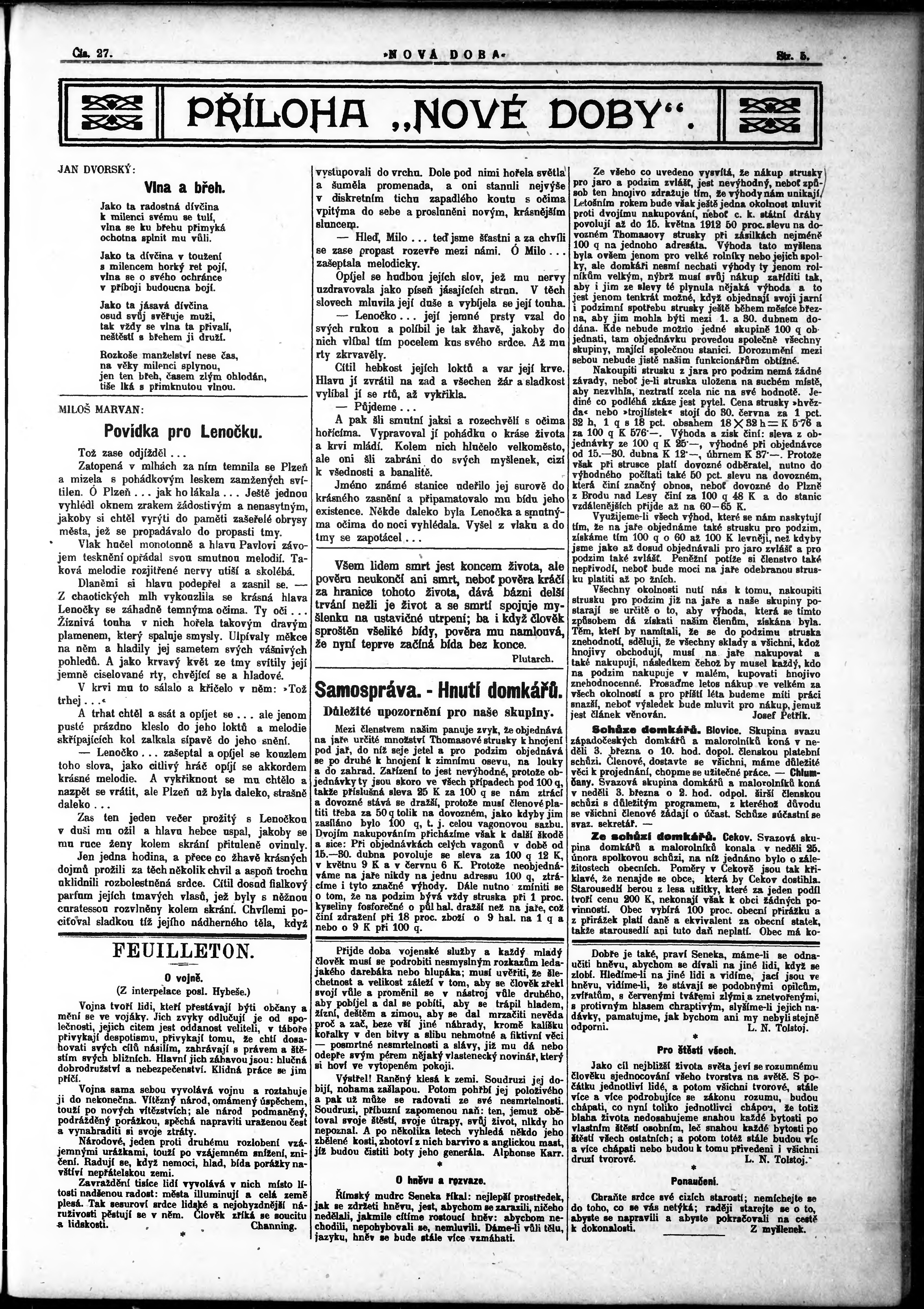 * Datum vydání výtisku: 1.3.1912 Číslo výtisku: 27 Poznámky k výtisku: po konfiskaci nové vydání;