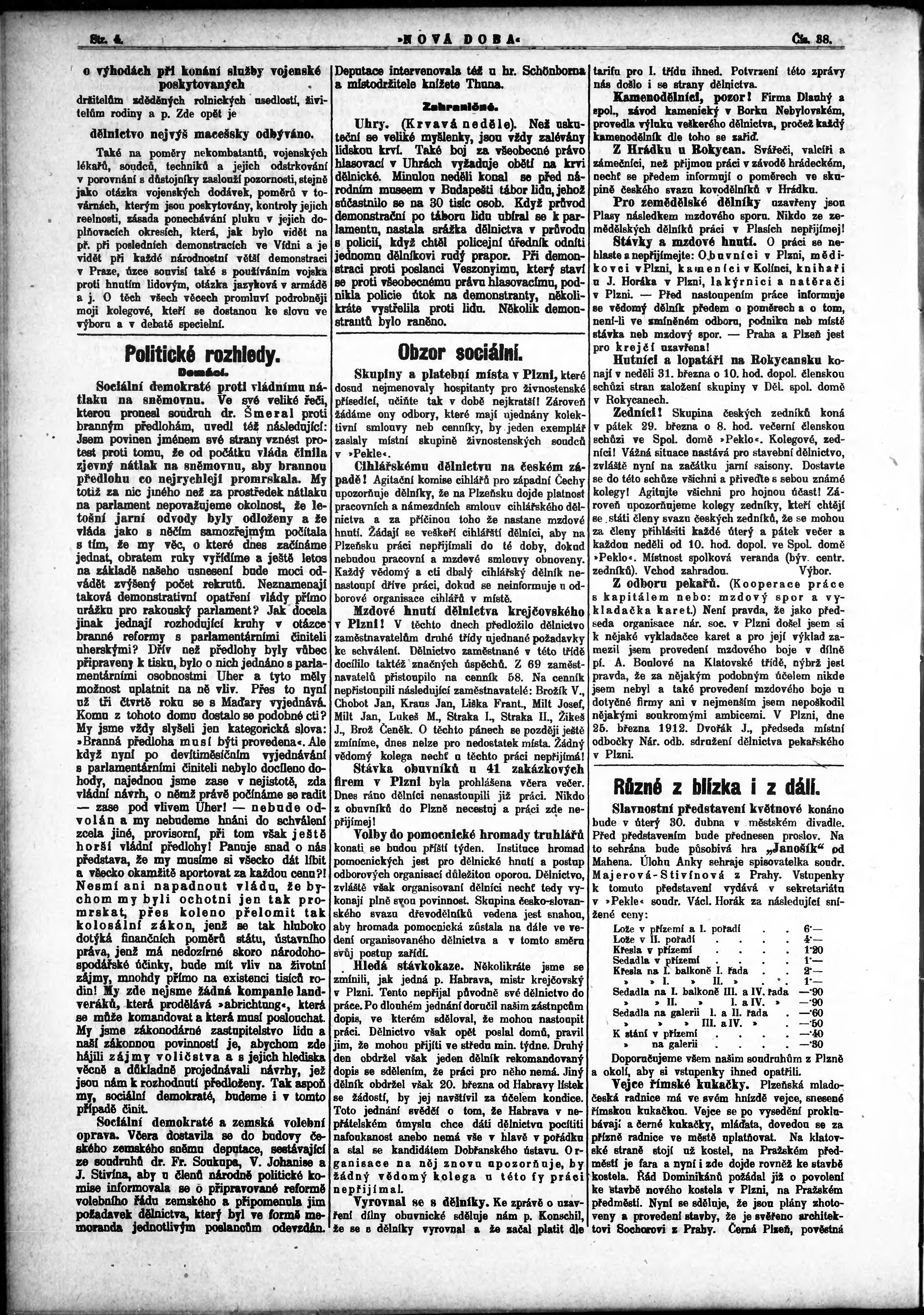 * Datum vydání výtisku: 27.3.1912 Číslo výtisku: 38