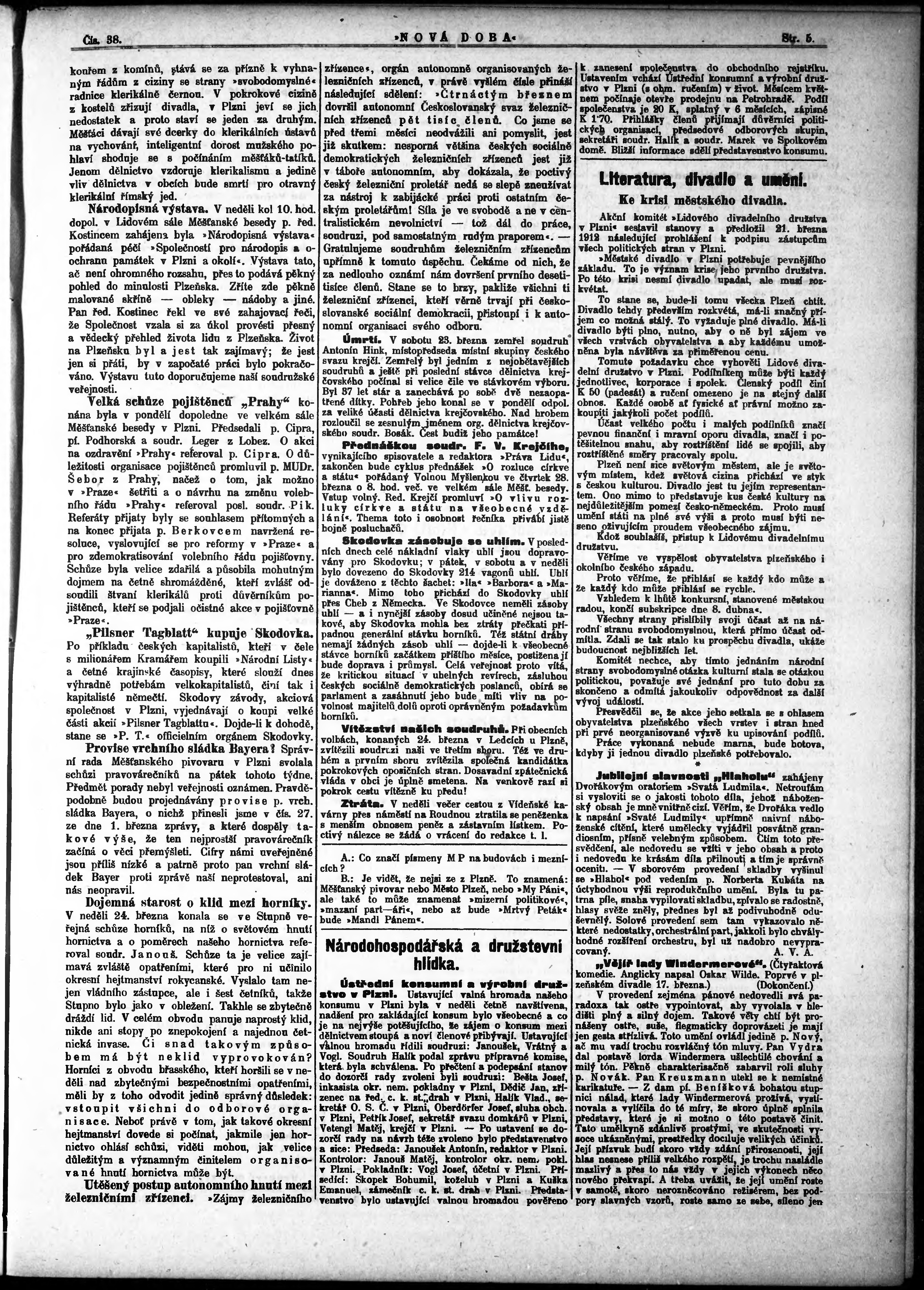 * Datum vydání výtisku: 27.3.1912 Číslo výtisku: 38