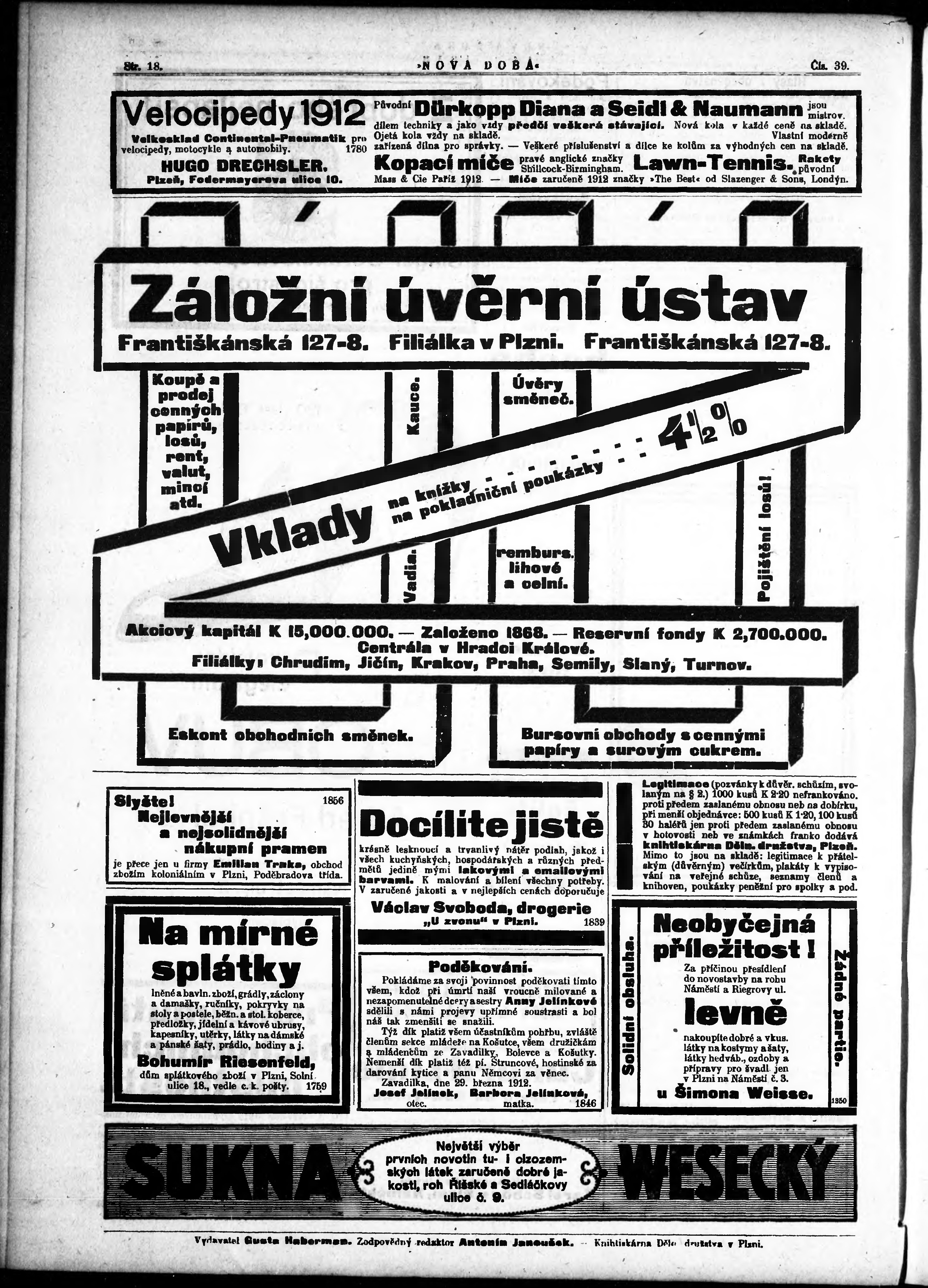* Datum vydání výtisku: 29.3.1912 Číslo výtisku: 39