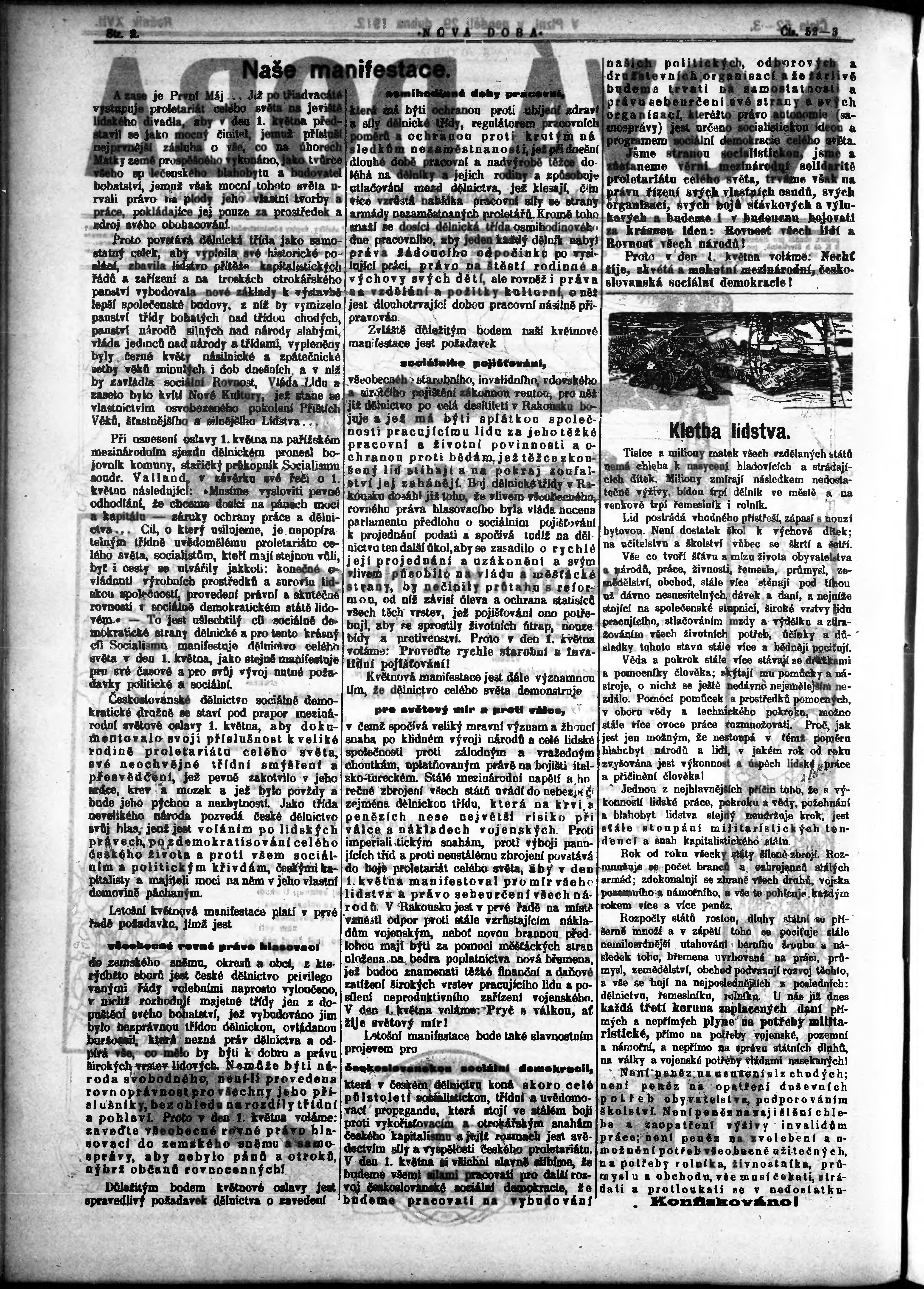 * Datum vydání výtisku: 29.4.1912 Číslo výtisku: 52 - 53