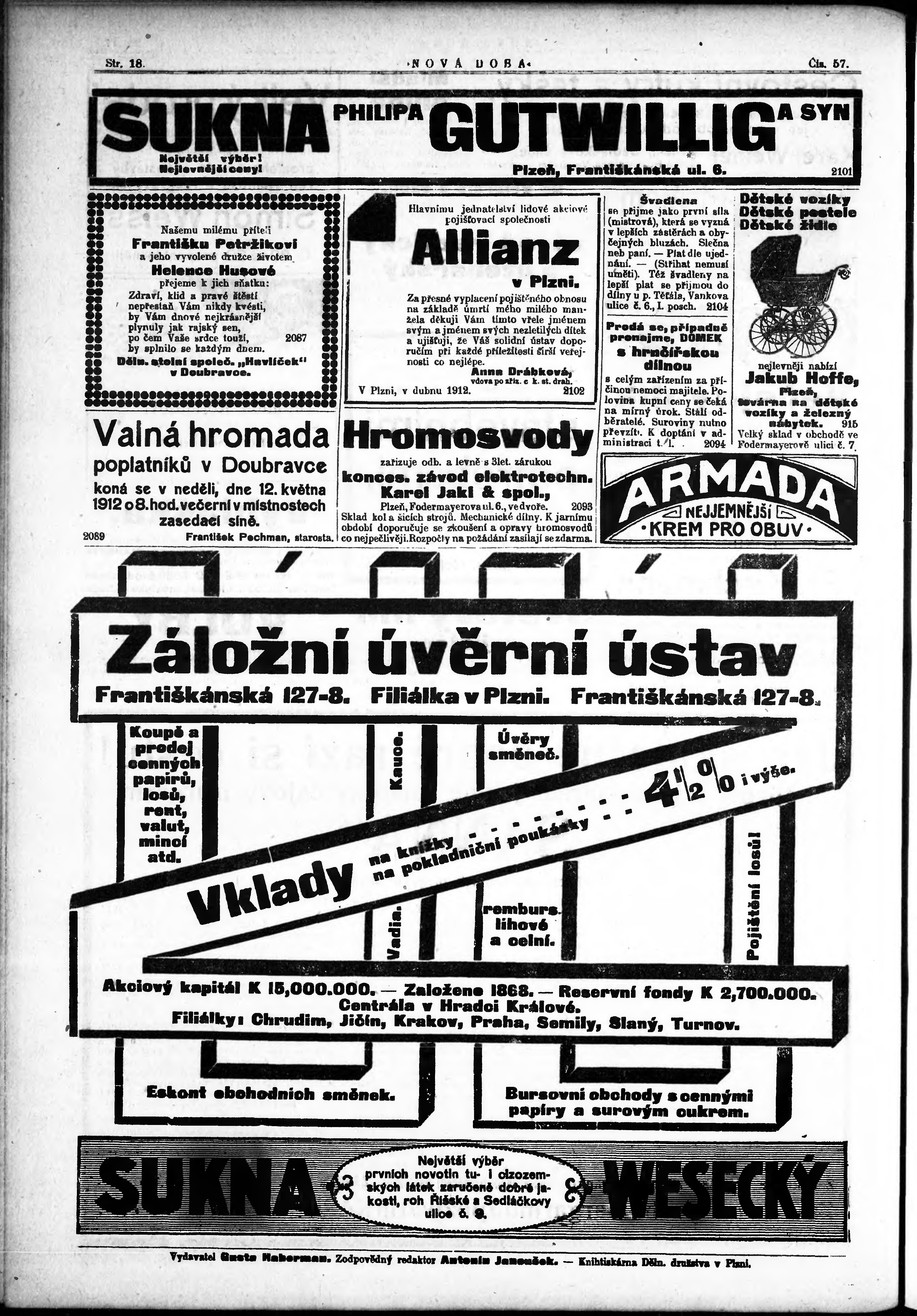 * Datum vydání výtisku: 10.5.1912 Číslo výtisku: 57a Poznámky k výtisku: po konfiskaci nové vydání;