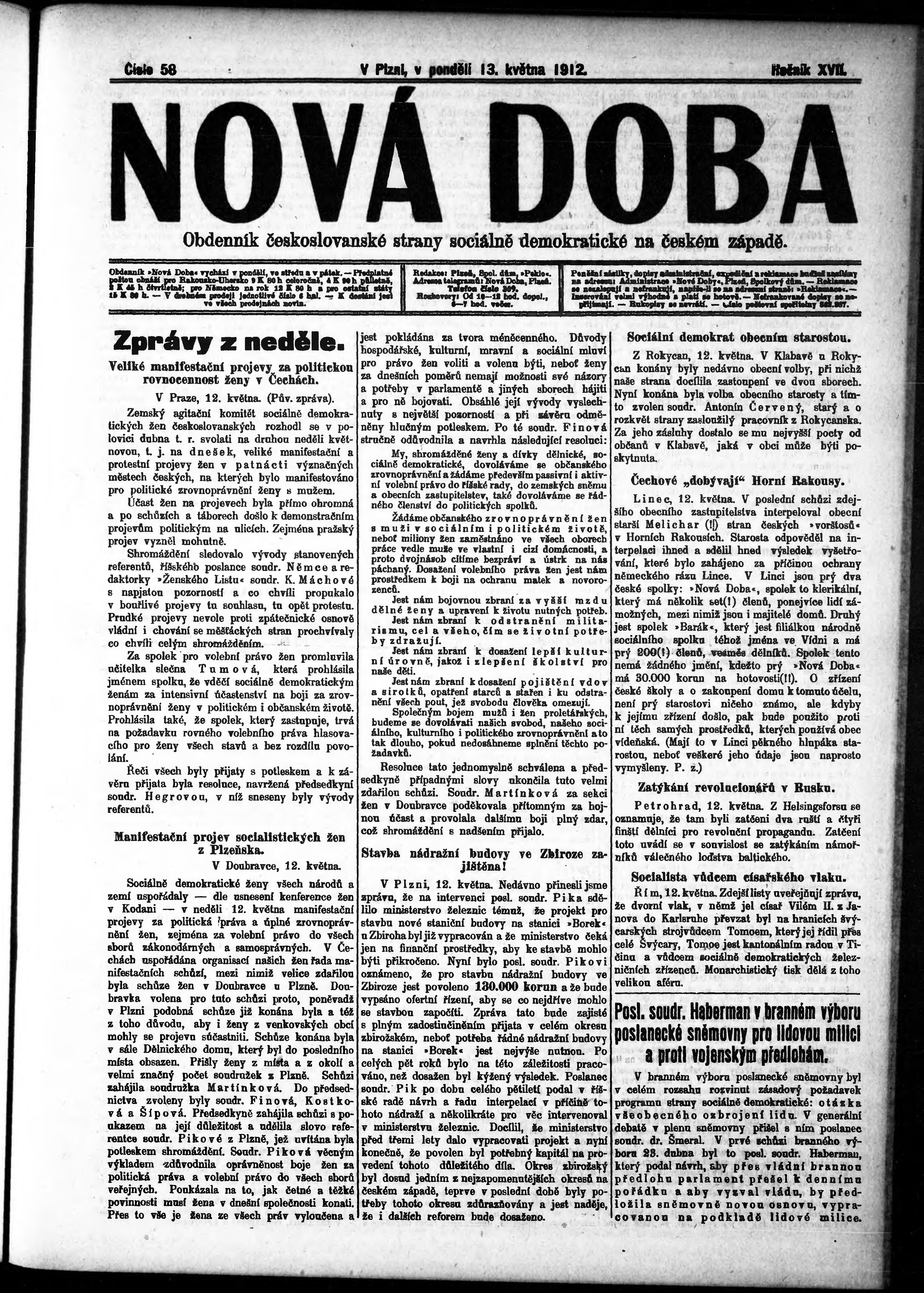* Datum vydání výtisku: 13.5.1912 Číslo výtisku: 58