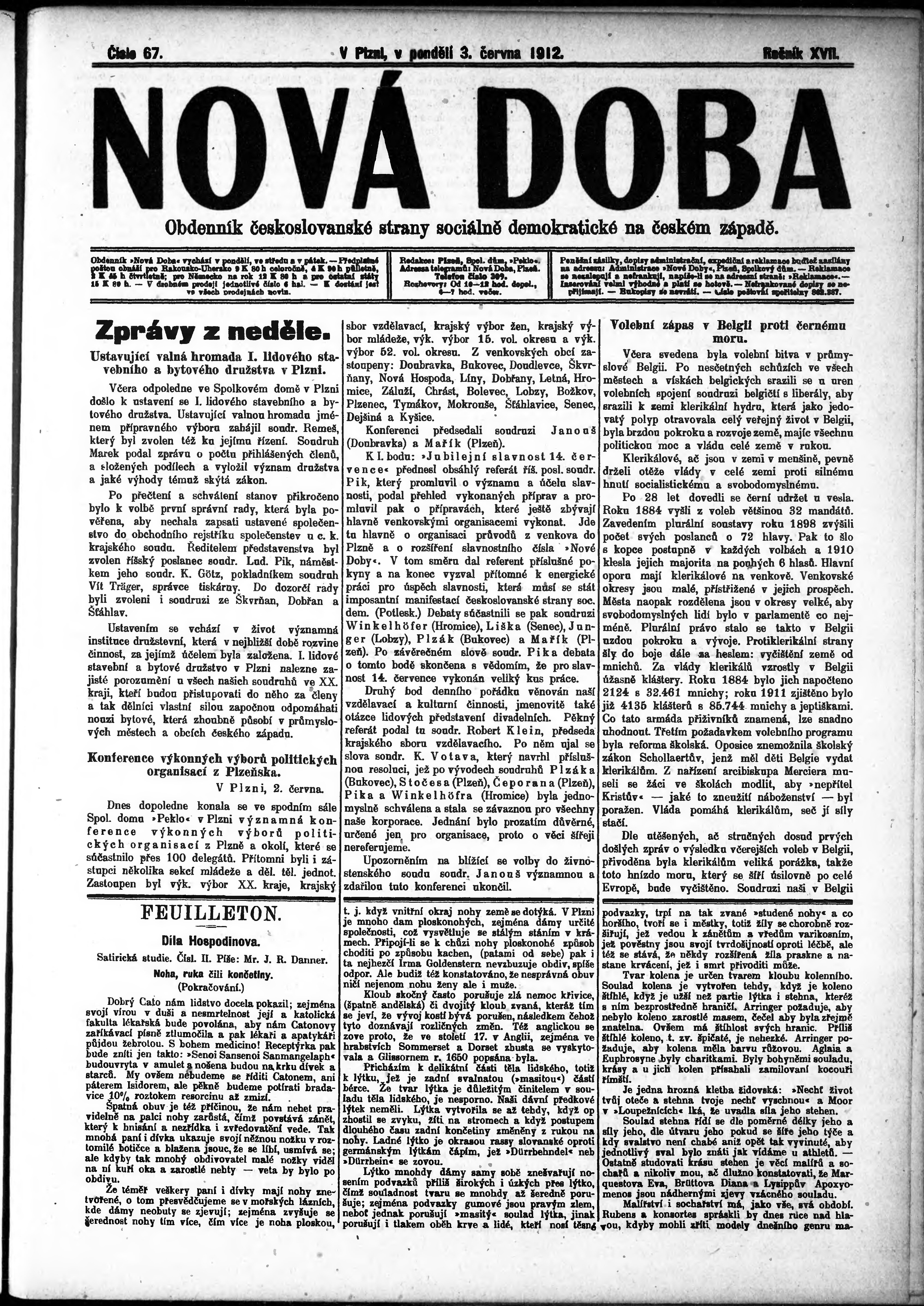 * Datum vydání výtisku: 3.6.1912 Číslo výtisku: 67