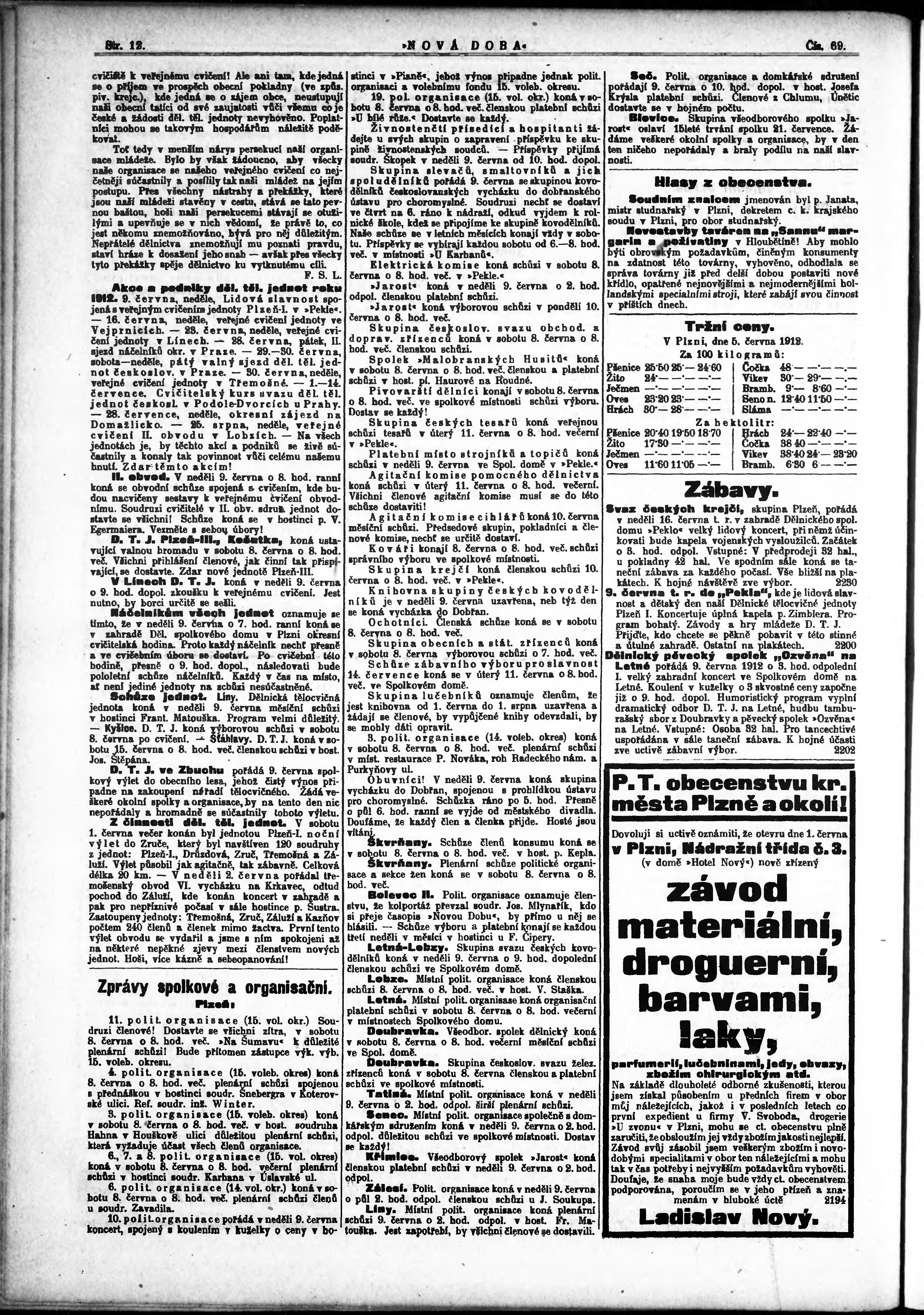 * Datum vydání výtisku: 7.6.1912 Číslo výtisku: 69