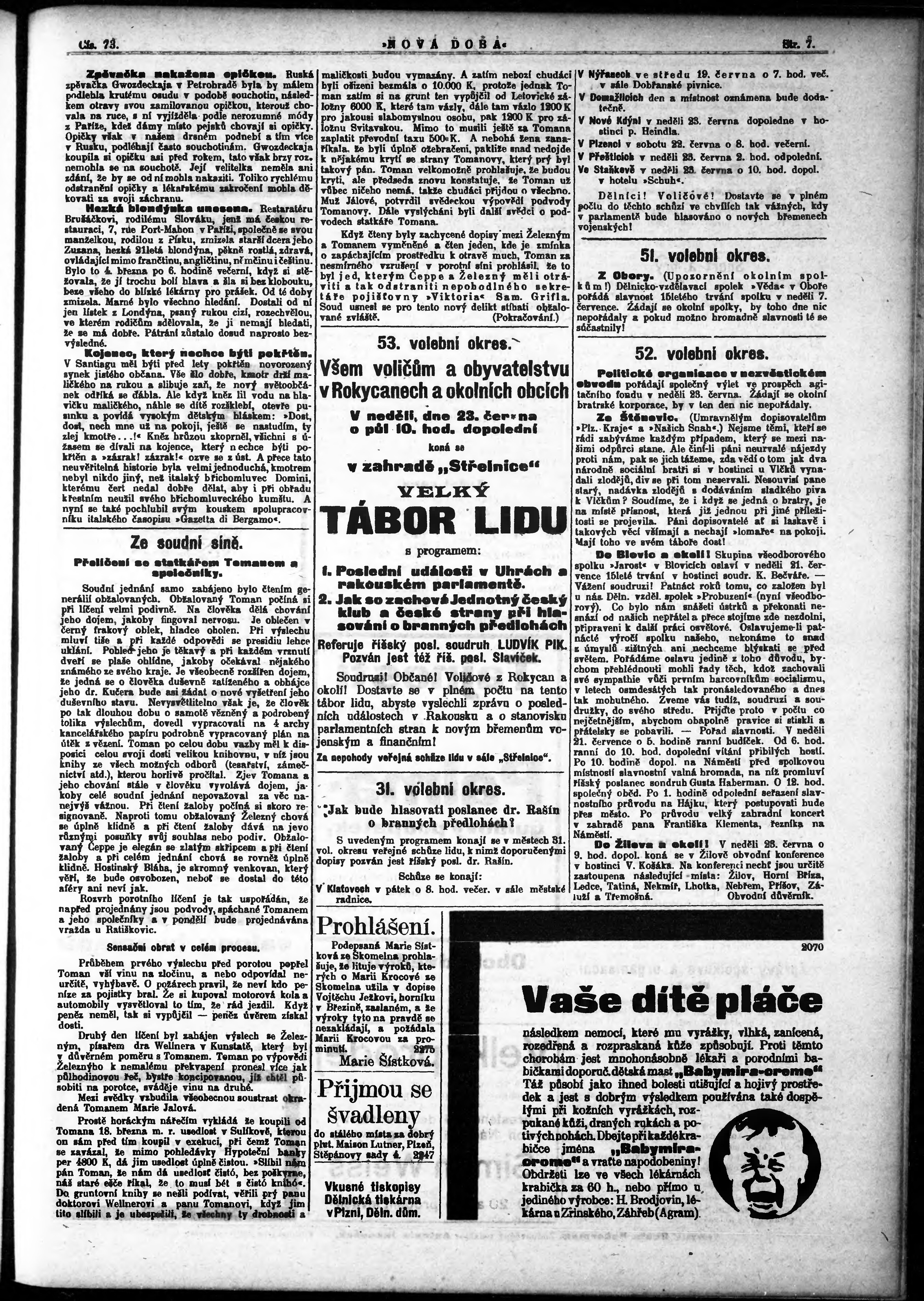 * Datum vydání výtisku: 17.6.1912 Číslo výtisku: 73
