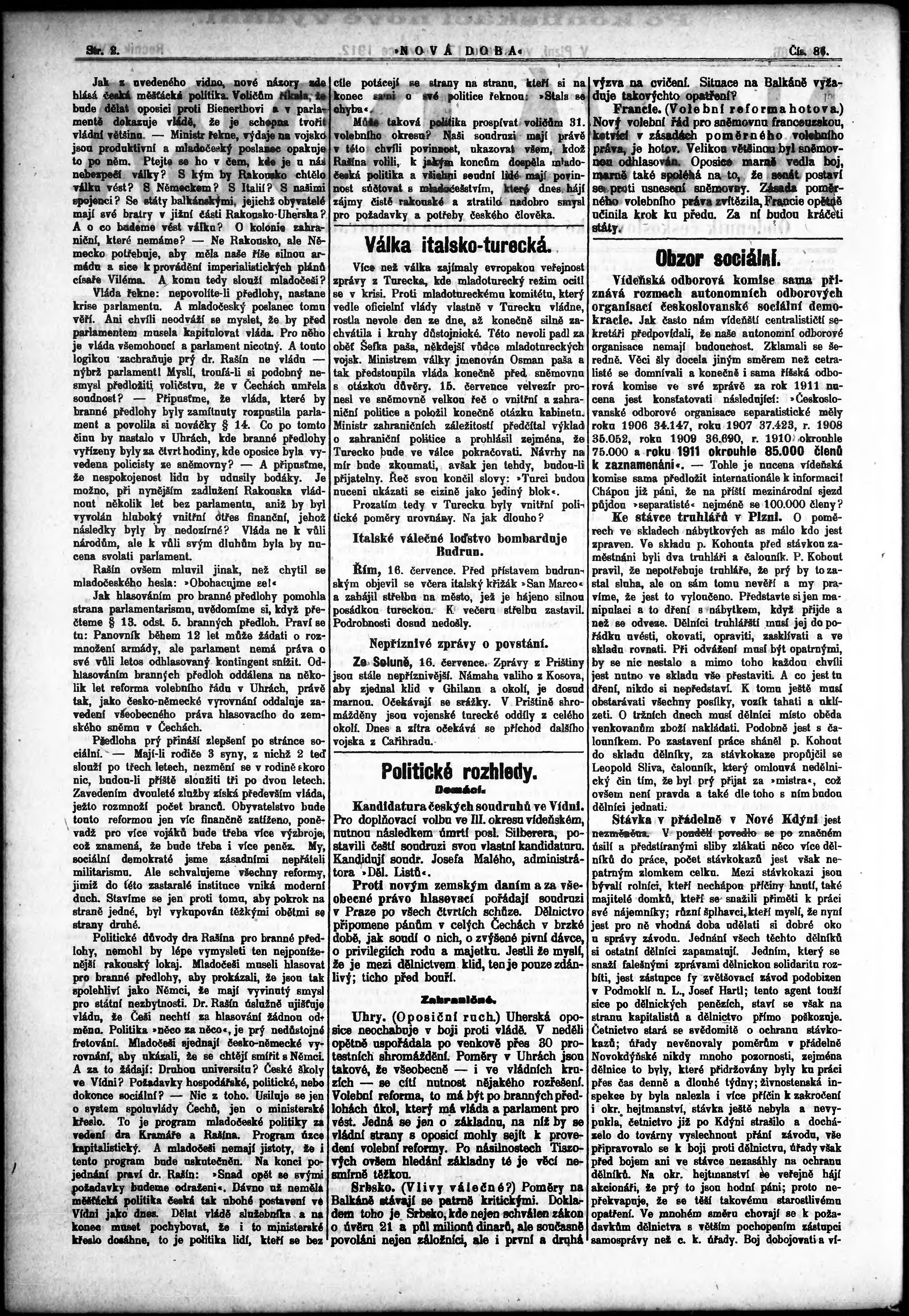 * Datum vydání výtisku: 17.7.1912 Číslo výtisku: 86 Poznámky k výtisku: po konfiskaci nové vydání;