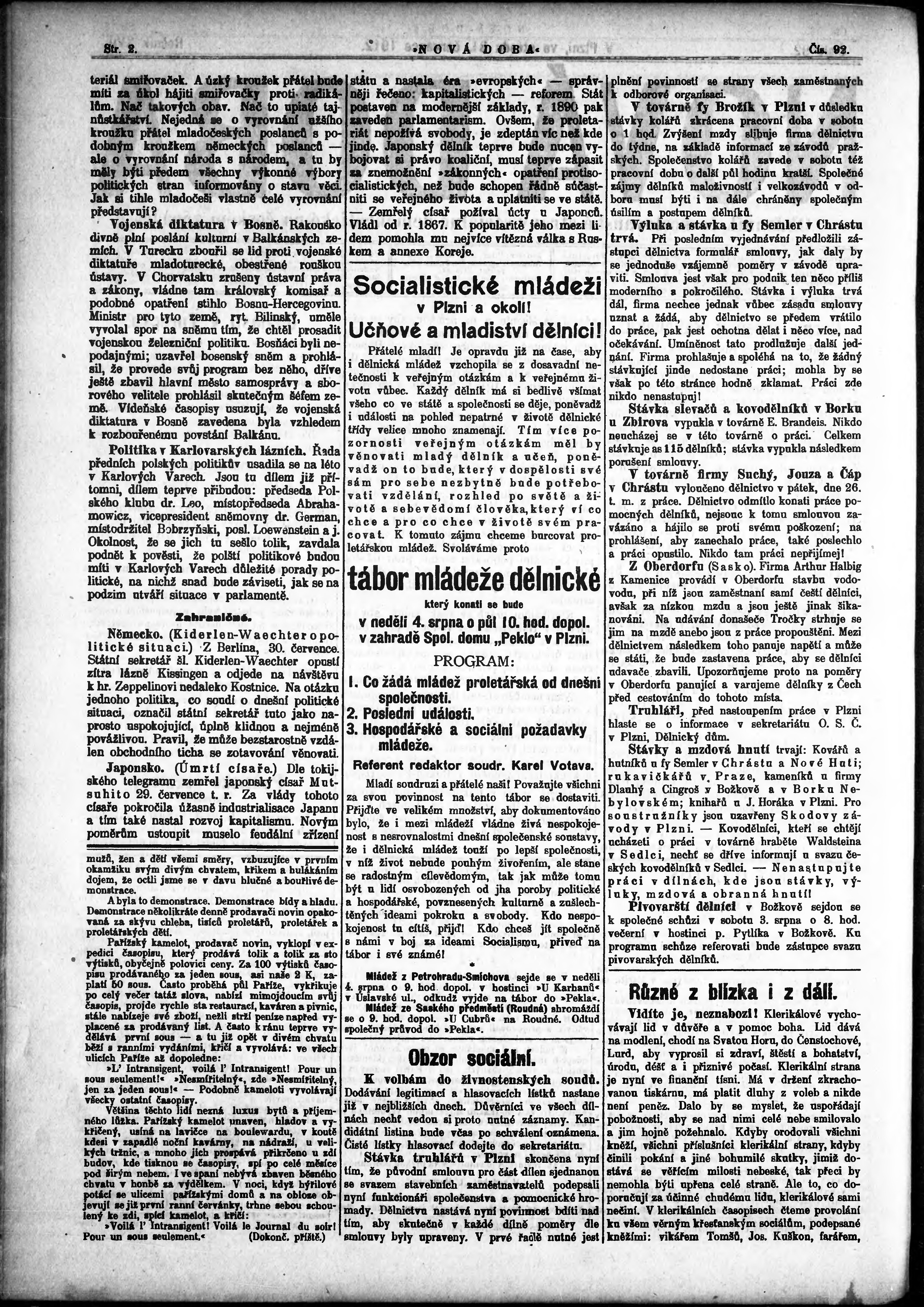 * Datum vydání výtisku: 31.7.1912 Číslo výtisku: 92