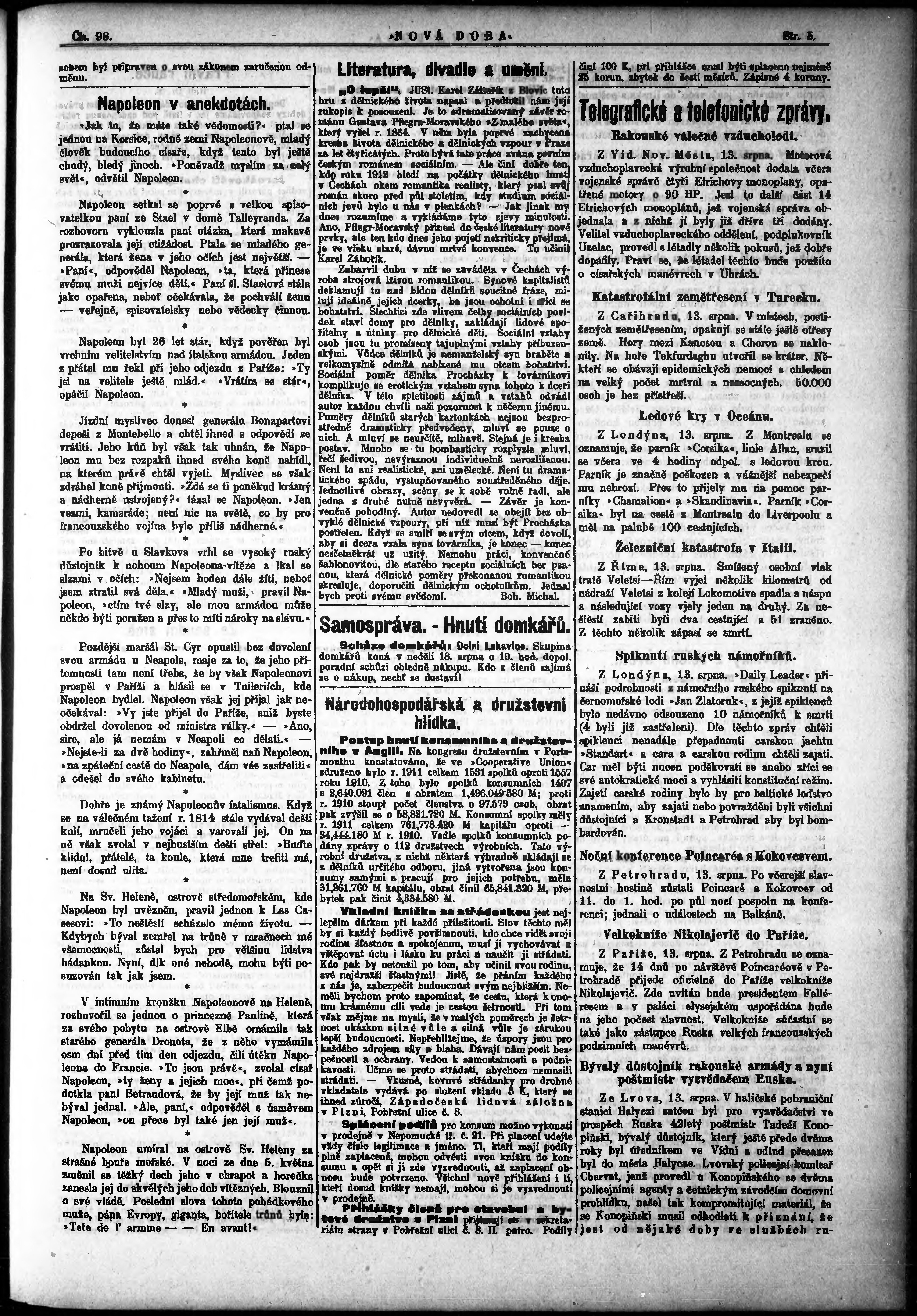 * Datum vydání výtisku: 14.8.1912 Číslo výtisku: 98