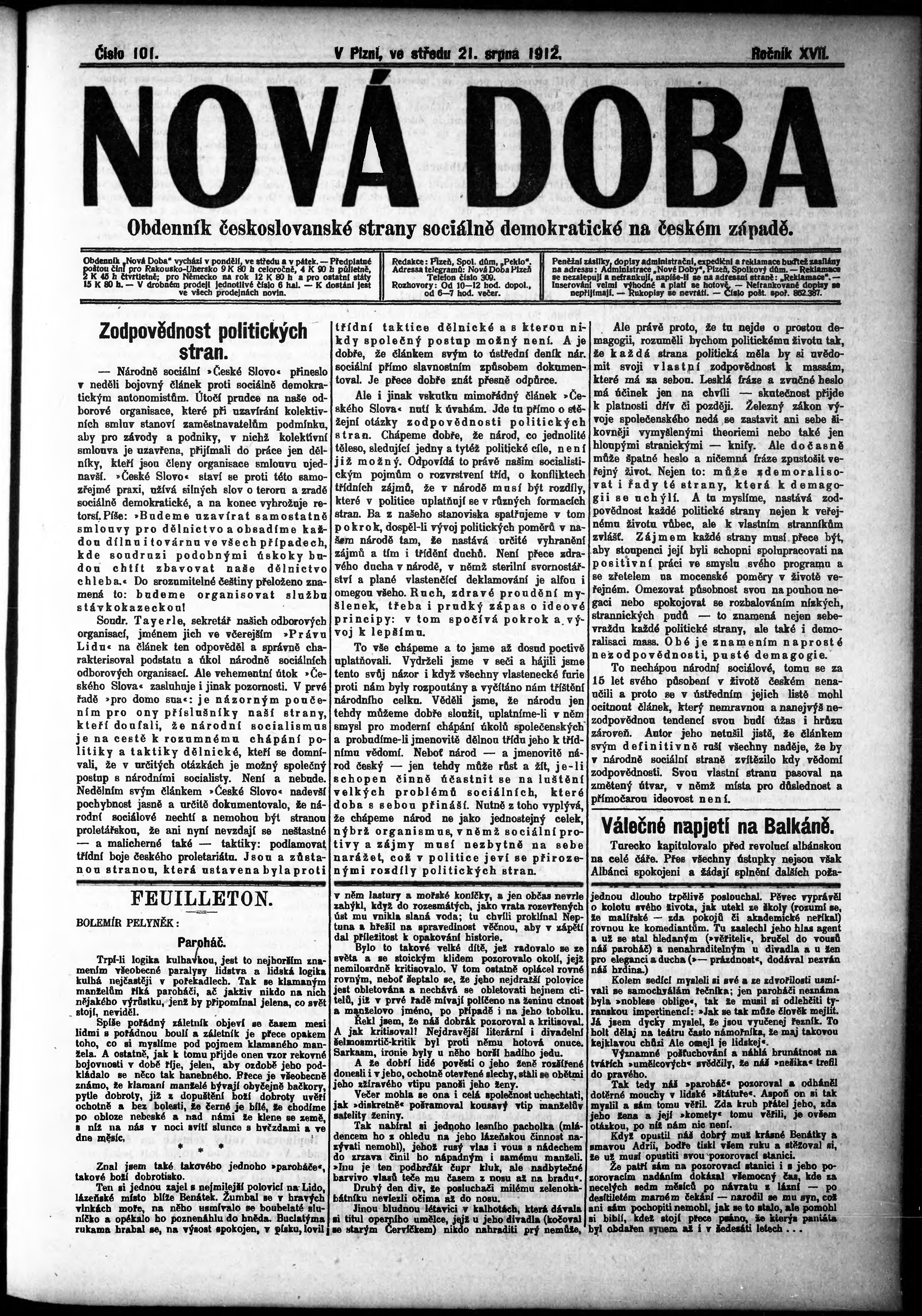 * Datum vydání výtisku: 21.8.1912 Číslo výtisku: 101
