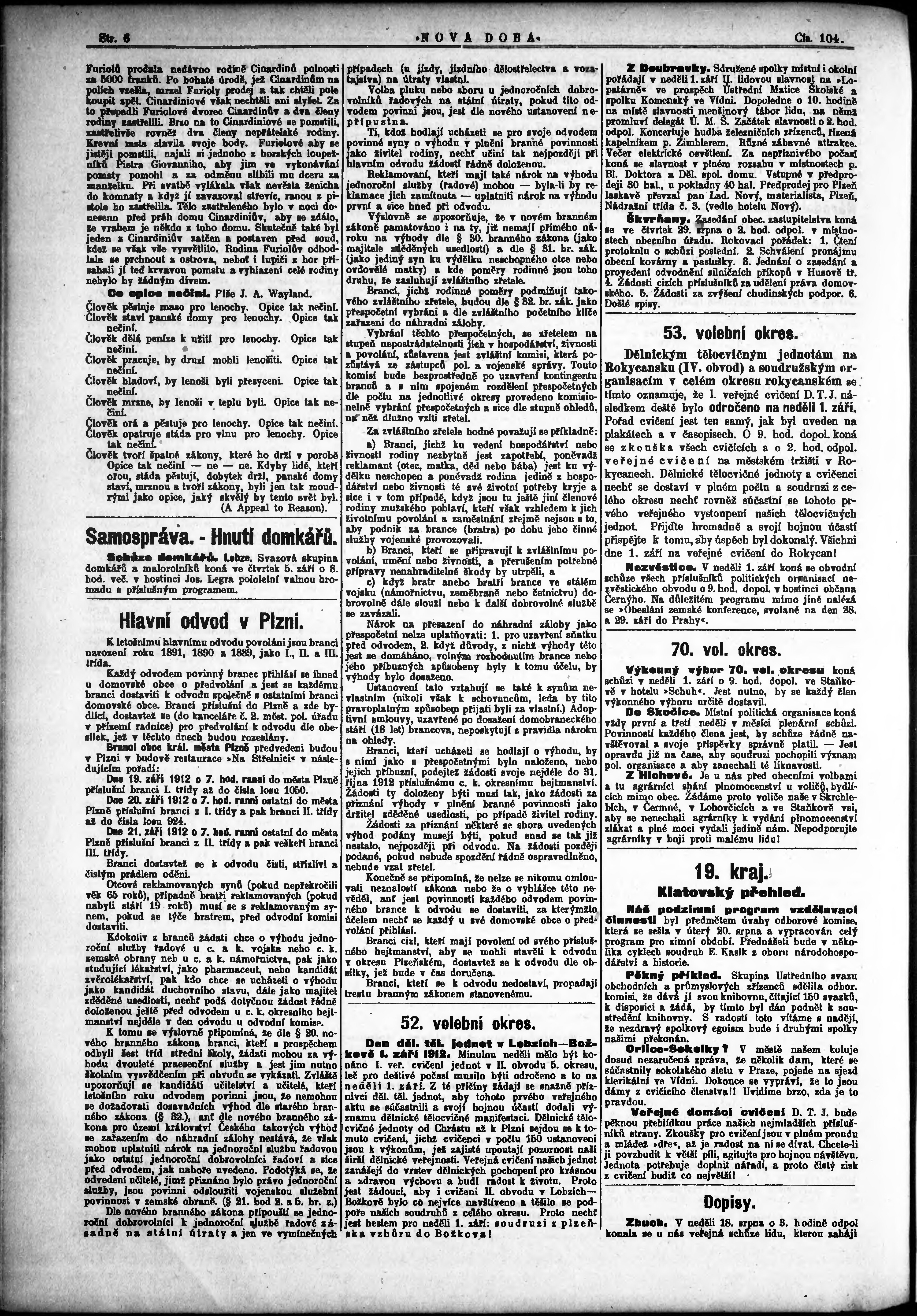 * Datum vydání výtisku: 28.8.1912 Číslo výtisku: 104 Poznámky k výtisku: po konfiskaci nové vydání;