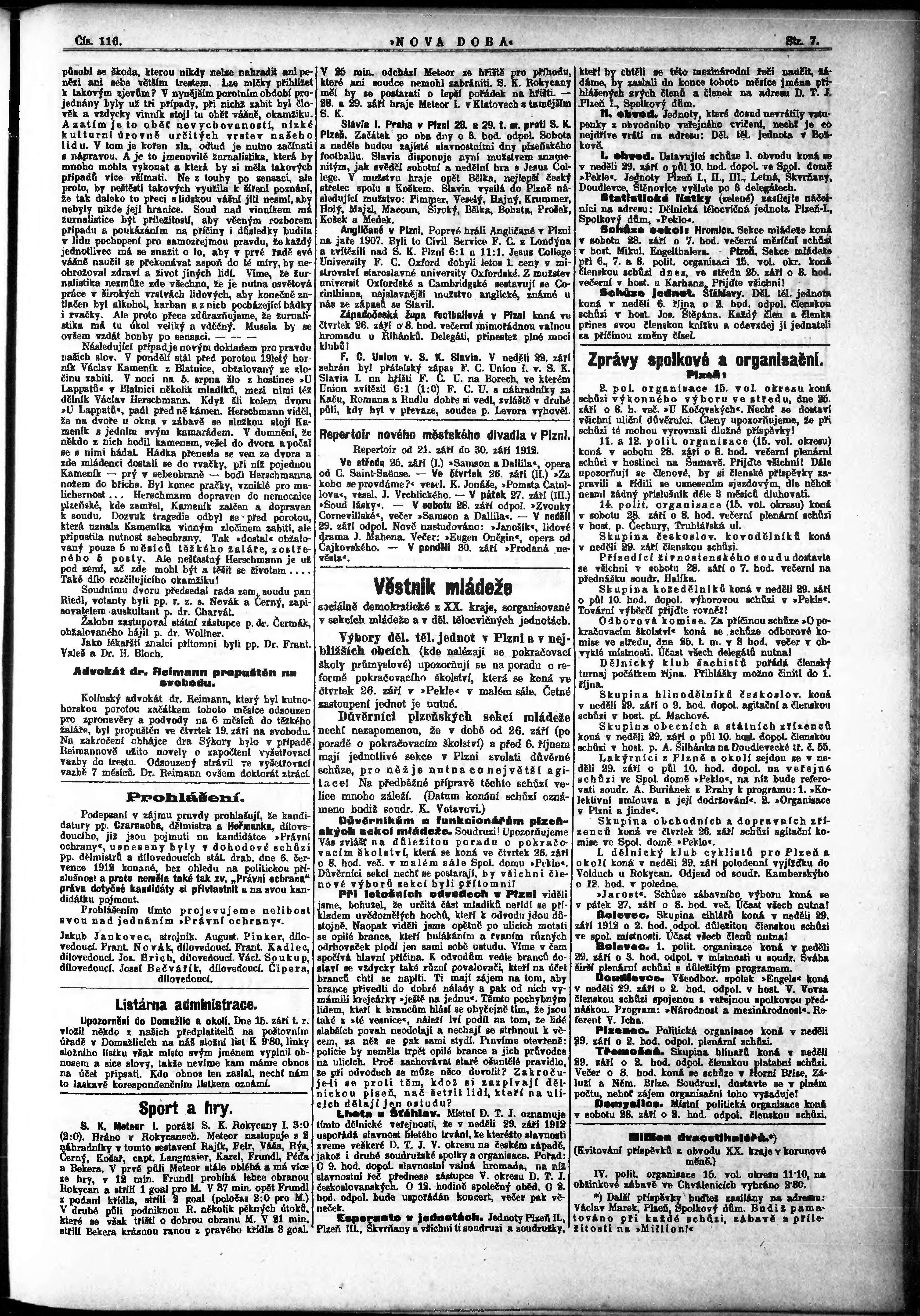 * Datum vydání výtisku: 25.9.1912 Číslo výtisku: 116