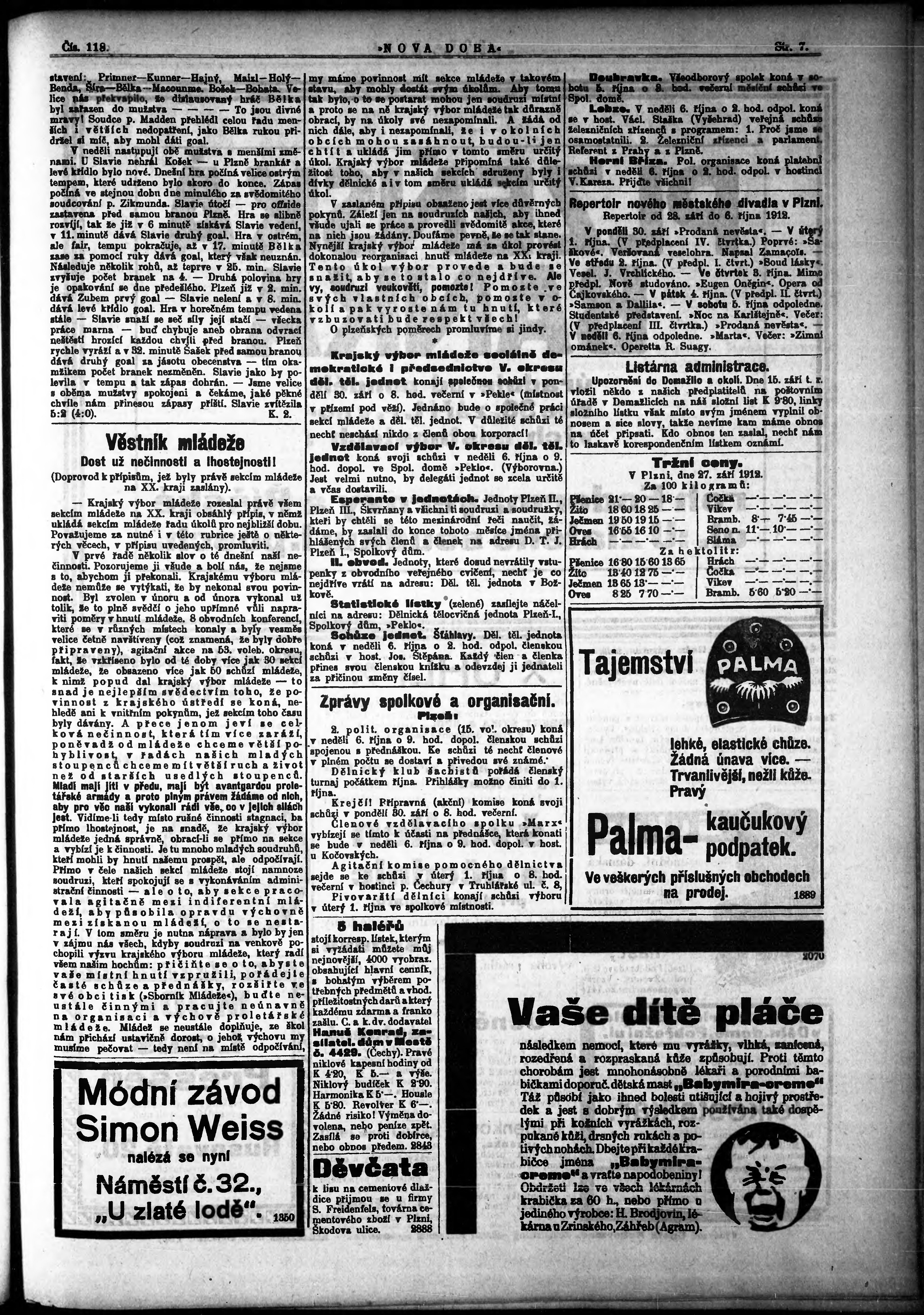 * Datum vydání výtisku: 30.9.1912 Číslo výtisku: 118